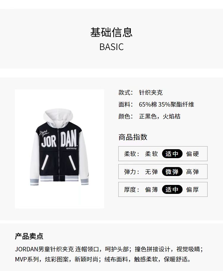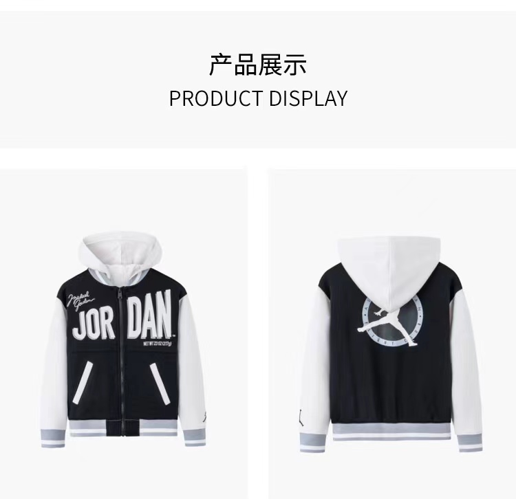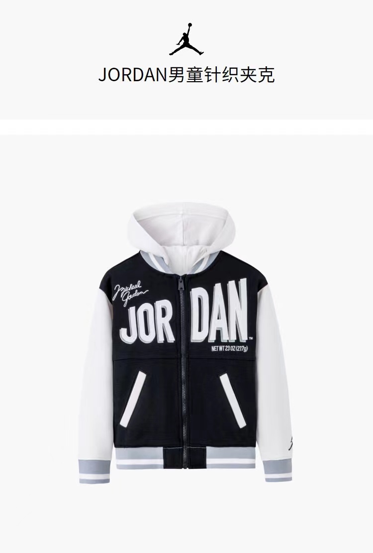 AIR JORDAN耐克男童夹克针织棒球服春新款连帽可拆JD2312015