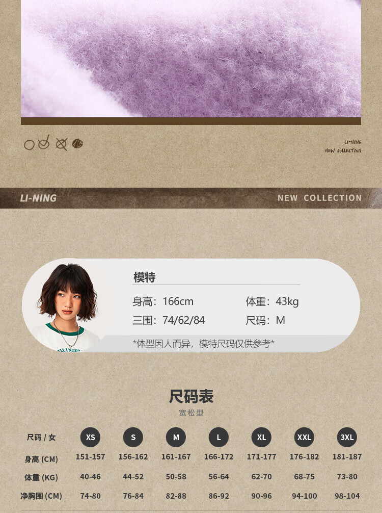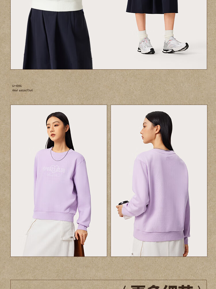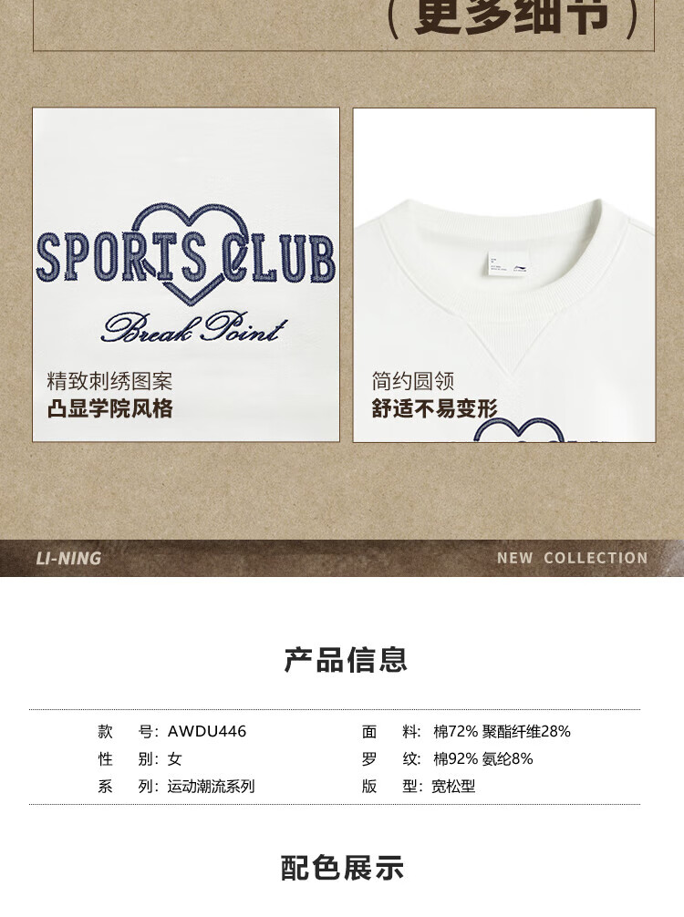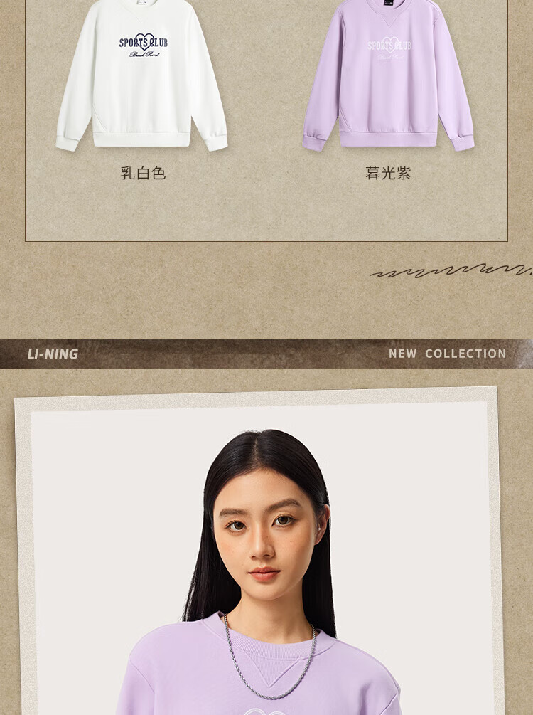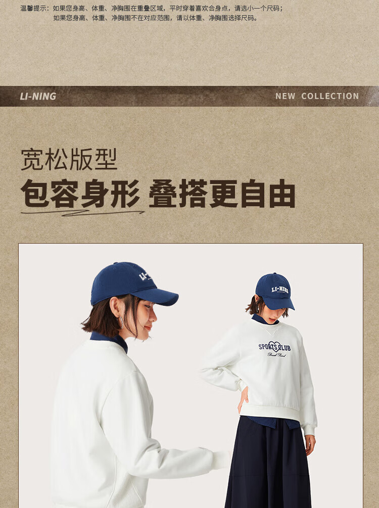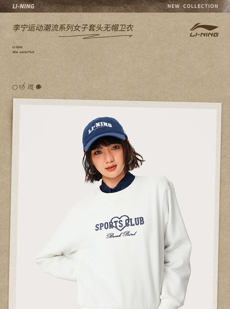 李宁加绒保暖卫衣女子爱心印花简约百搭运动上衣 乳白色AWDU446