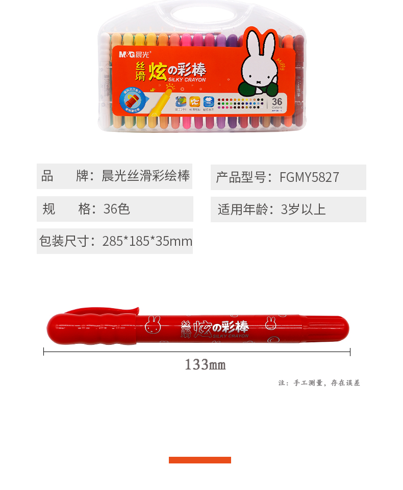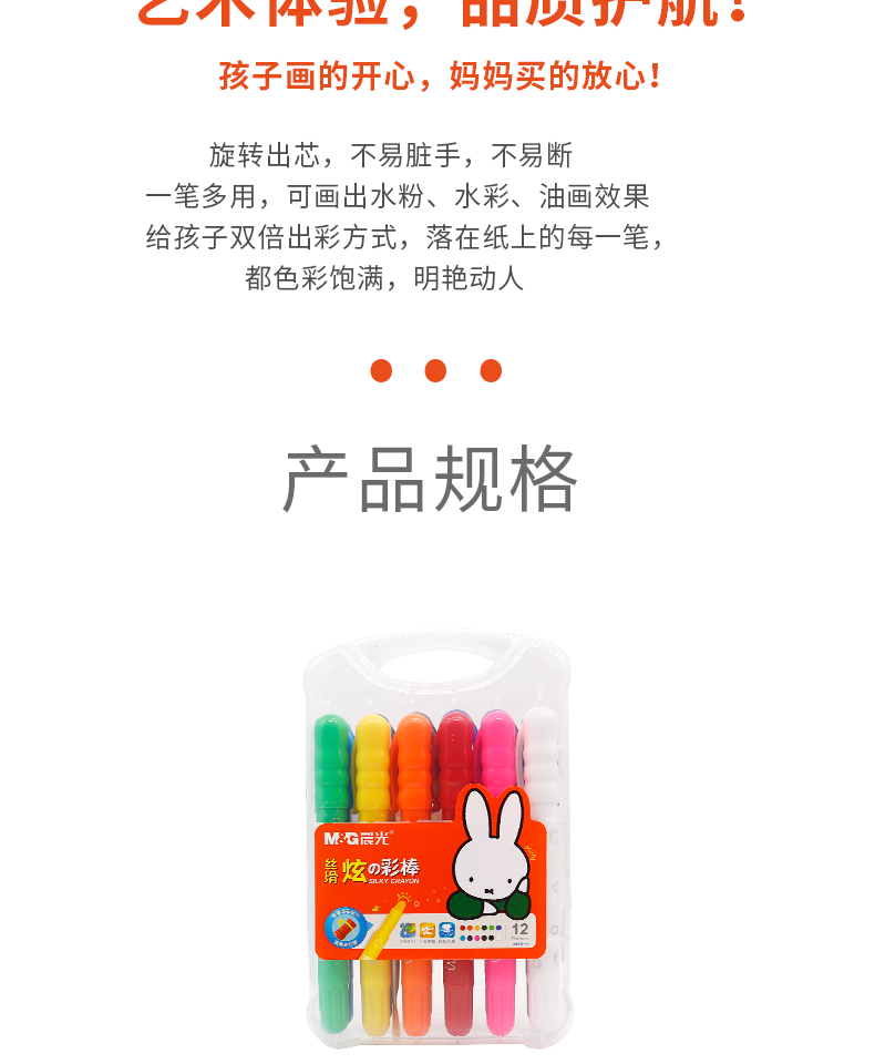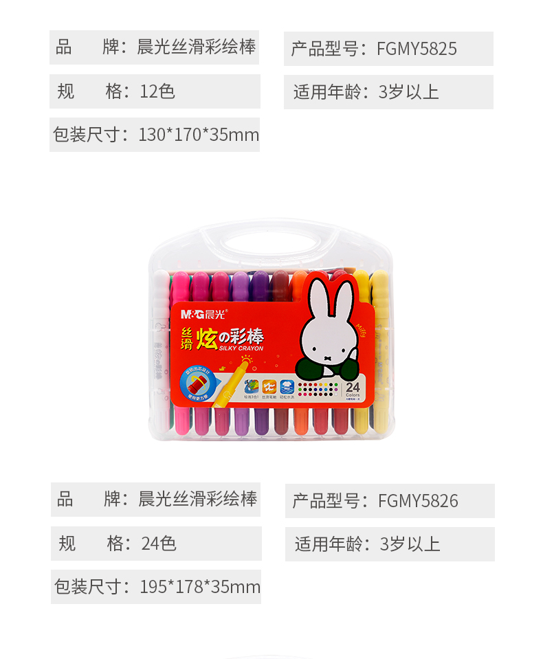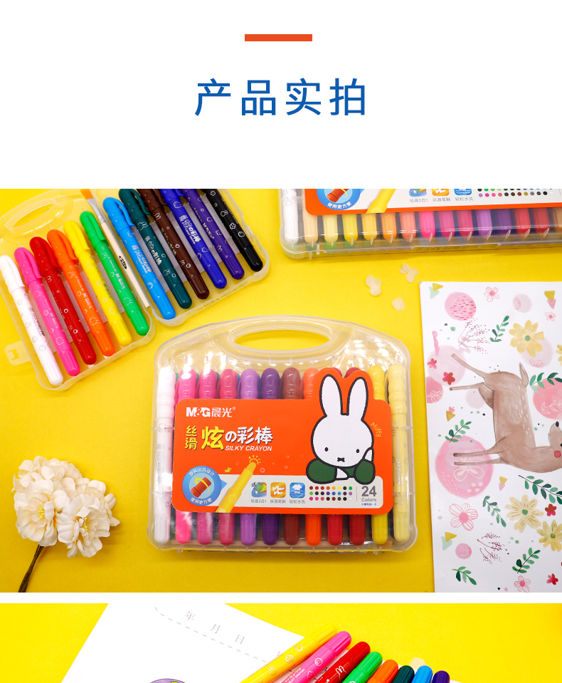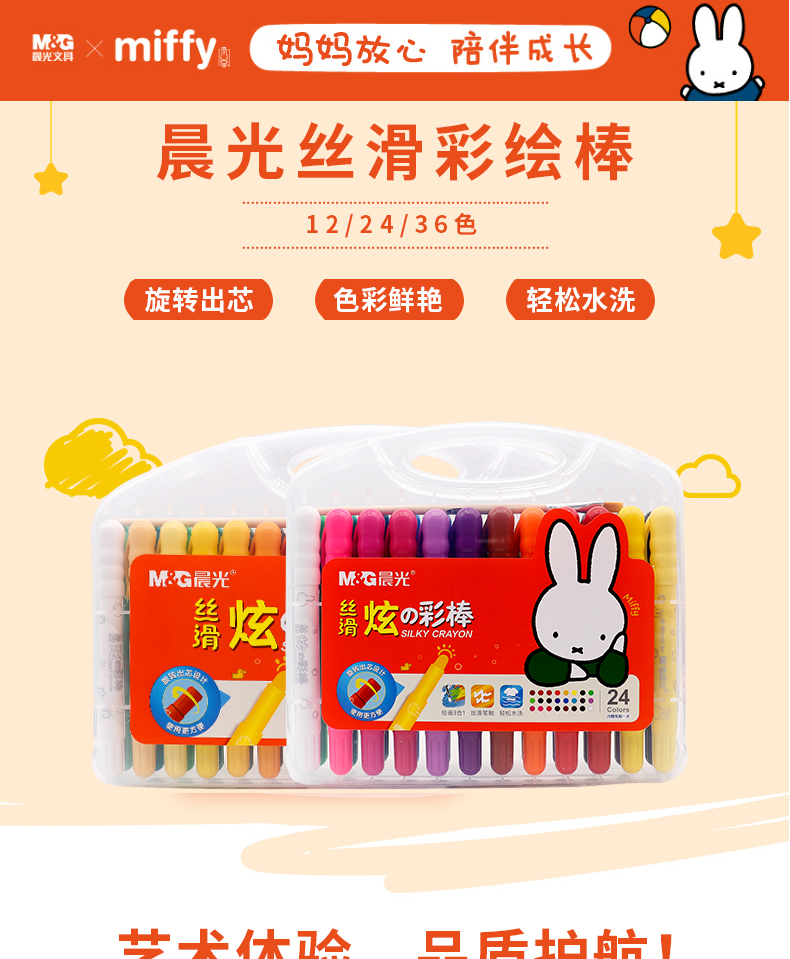 晨光米菲丝滑炫彩棒24色FGMY5826文具彩绘棒水洗可洗旋转油画棒
