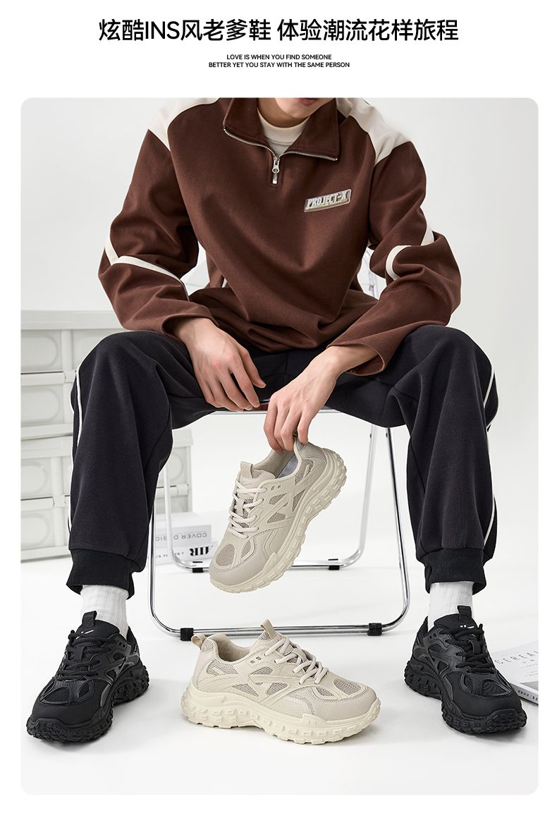 回力老爹鞋男鞋2025秋季新款ins潮流百搭黑色网面透气休闲运动鞋