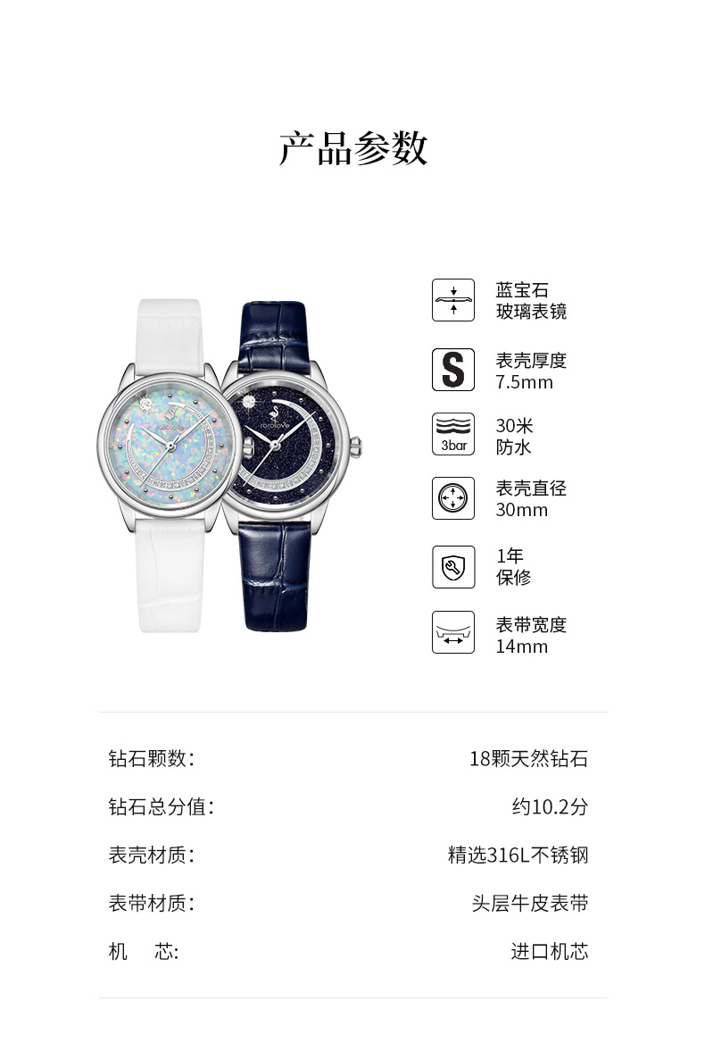 【ROROLOVE】星月夜MoonlitStarryNight系列天然钻石手表 蒋梦婕/张俪同款 送原装网带(18颗钻石)