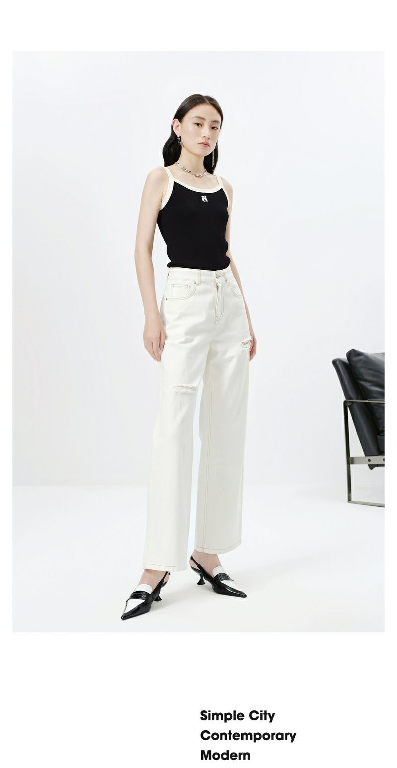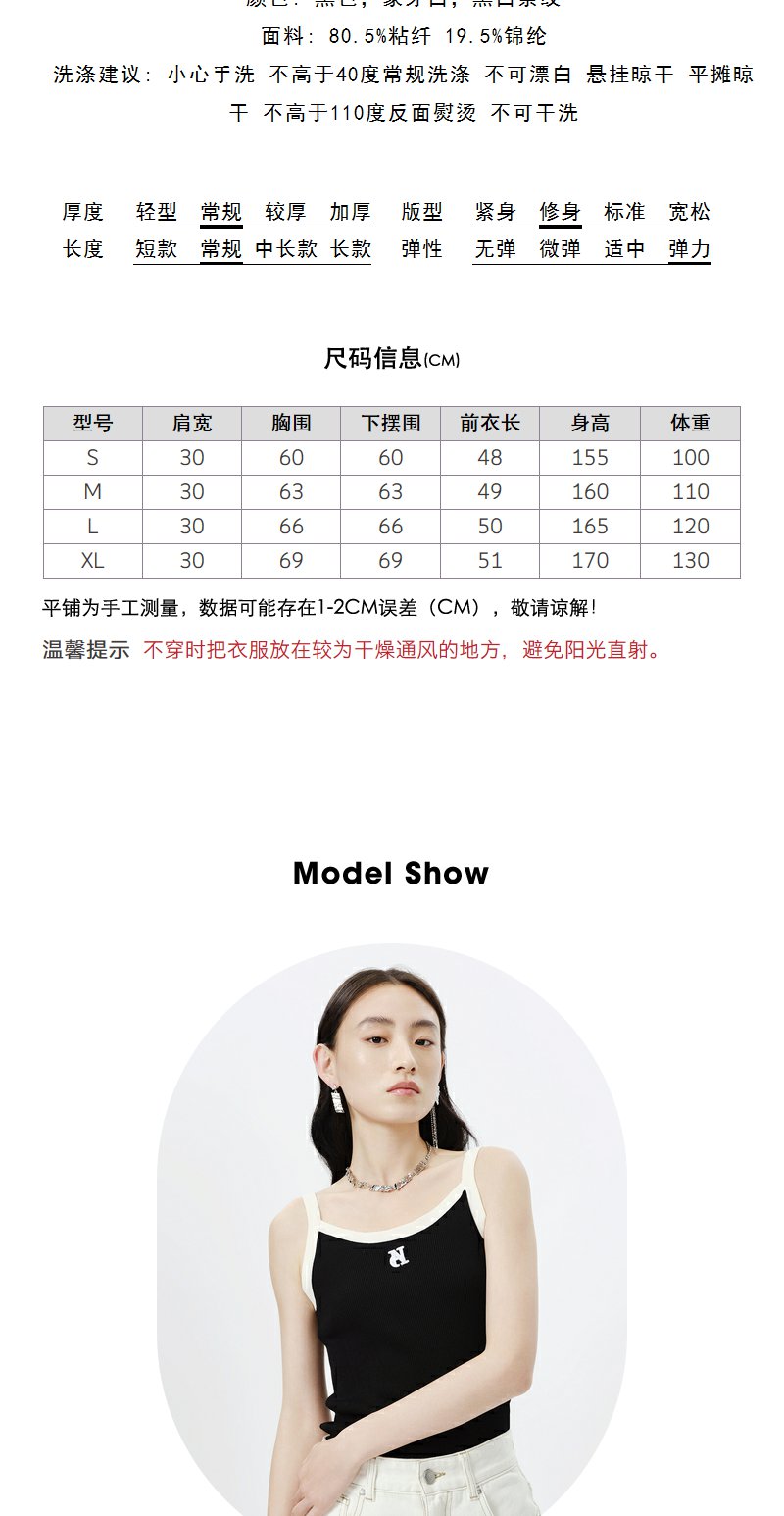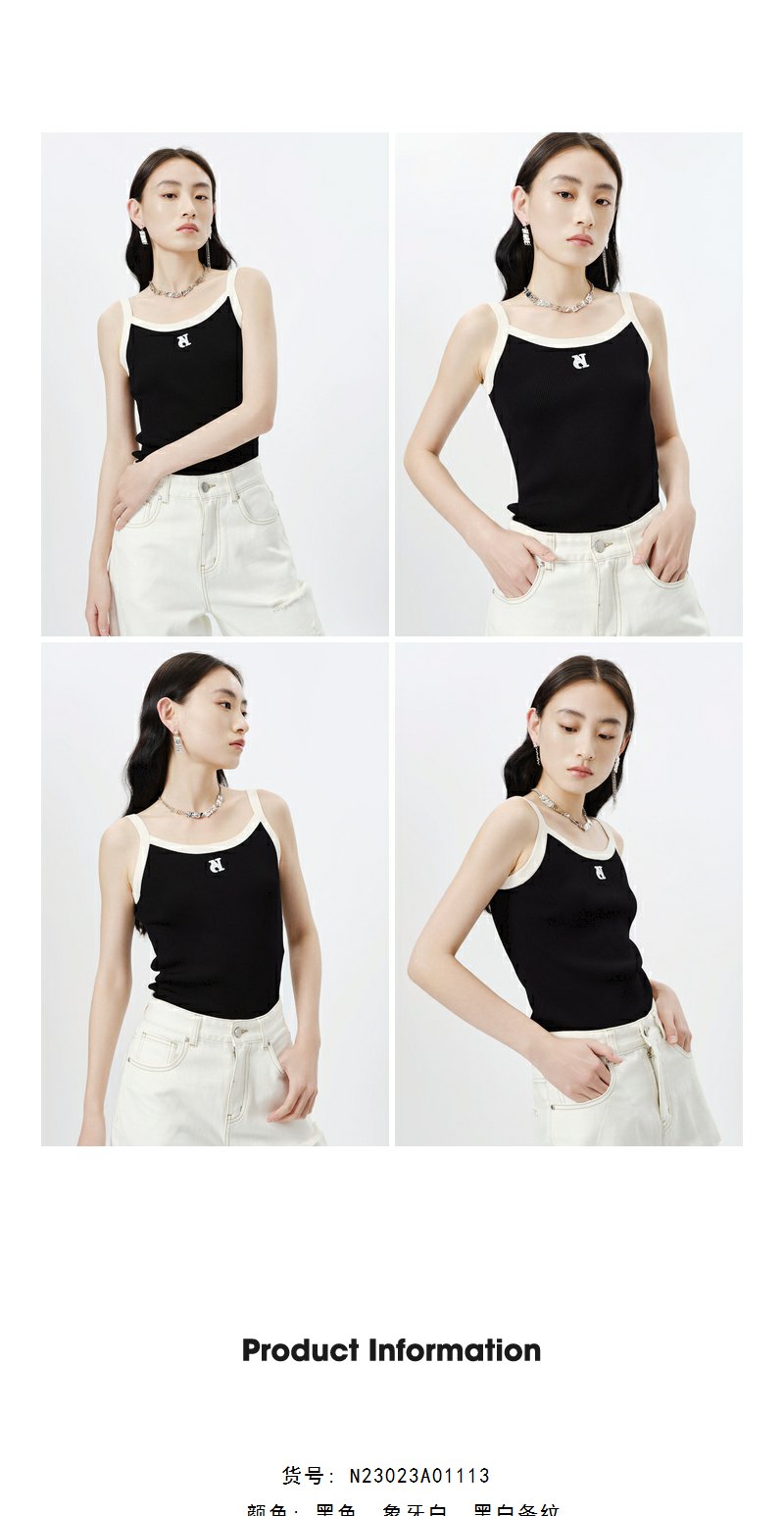 NEELLY纳俪商场同款吊带针织衫女修身短款套头简约内搭时尚百搭N23023A01113