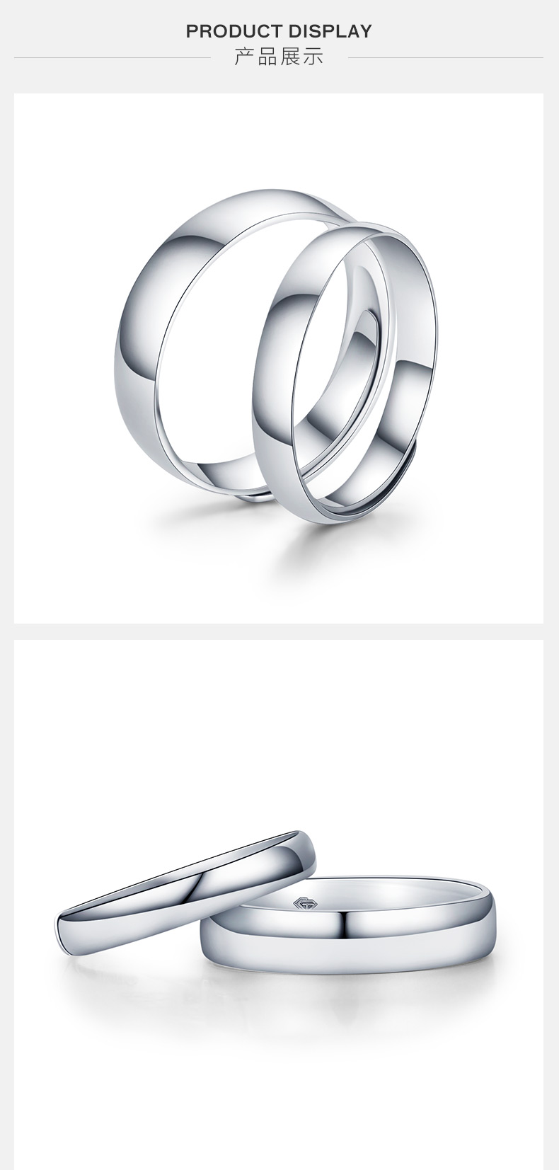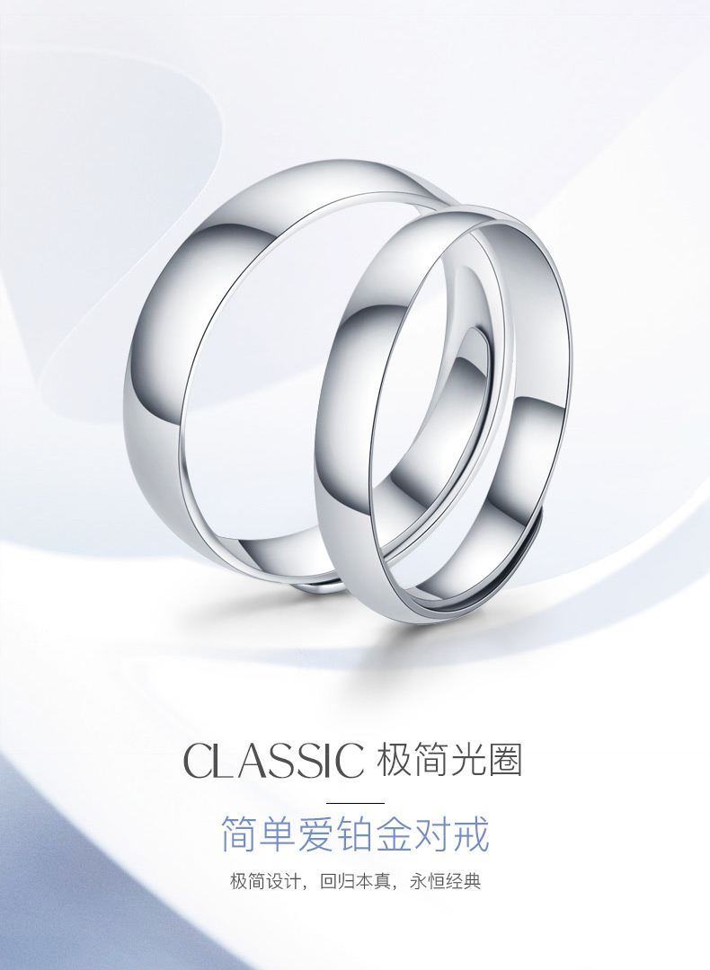 中国珠宝 铂金PT950极简光圈情侣对戒结婚戒指礼物