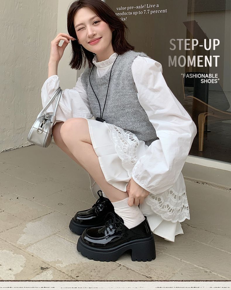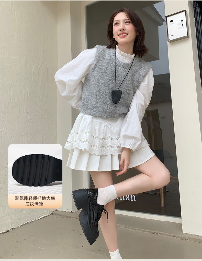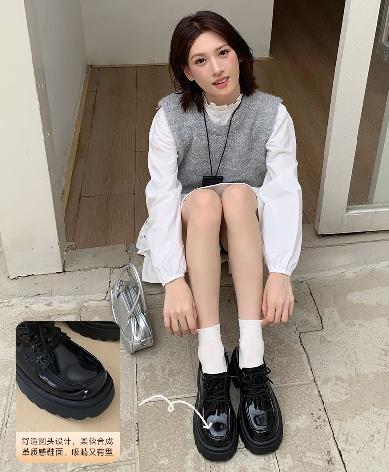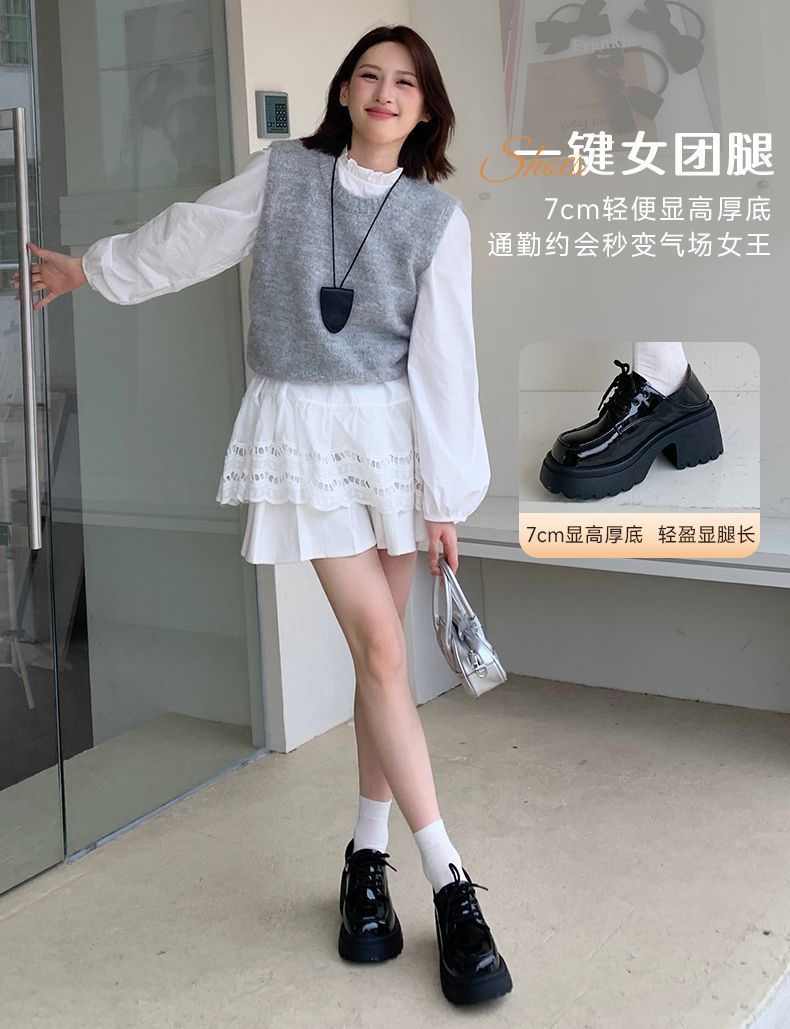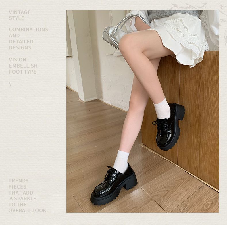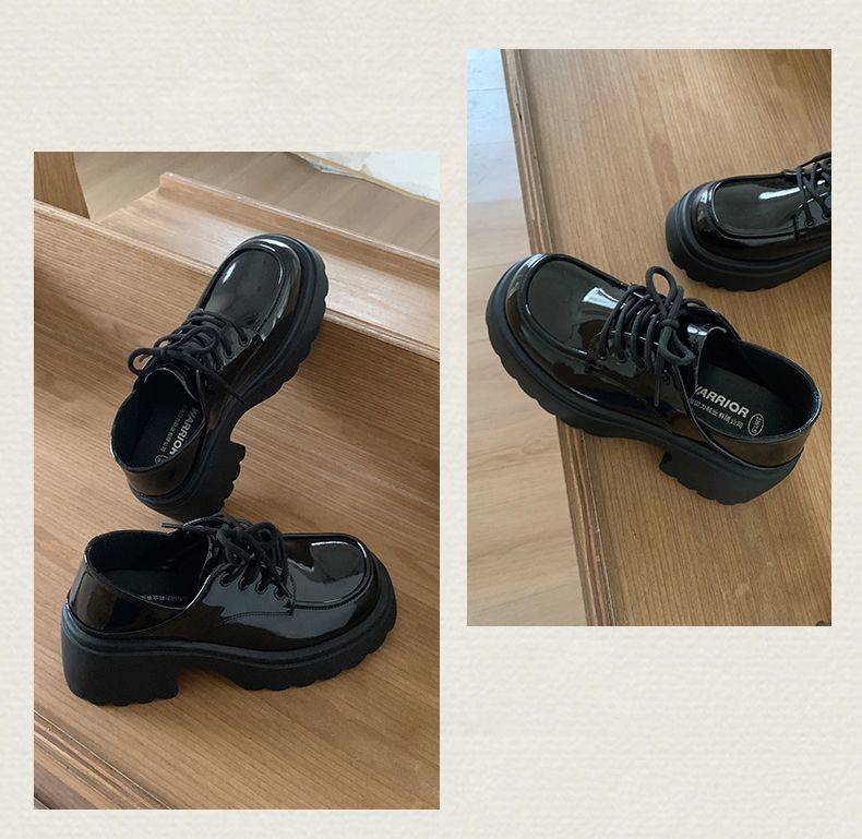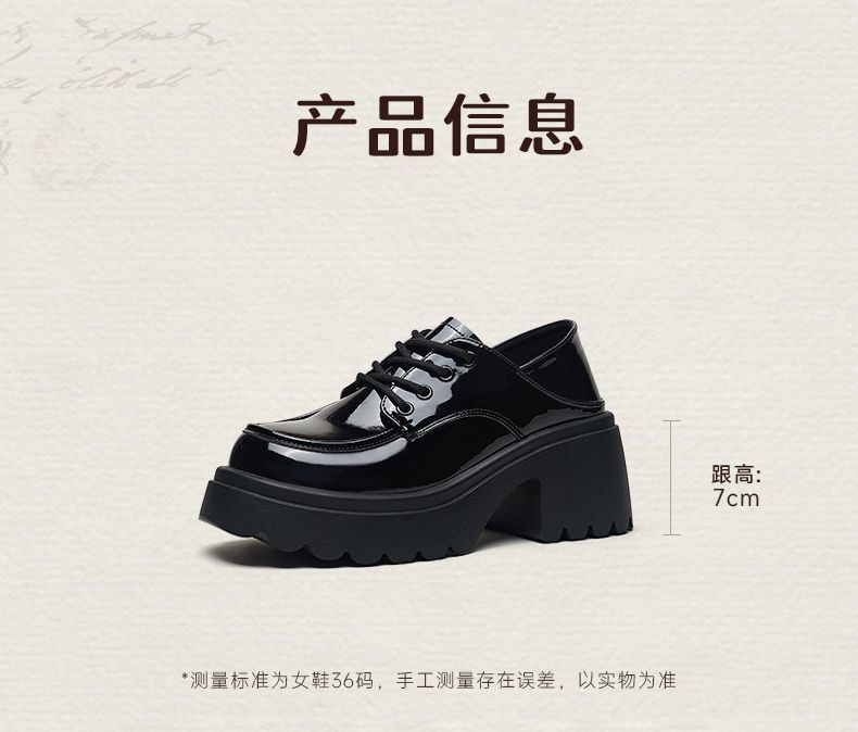 回力小皮鞋女2025秋季新款增高英伦风粗跟不累脚乐福鞋黑色jk鞋子