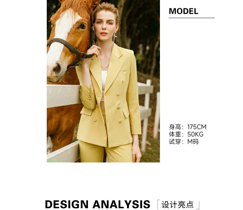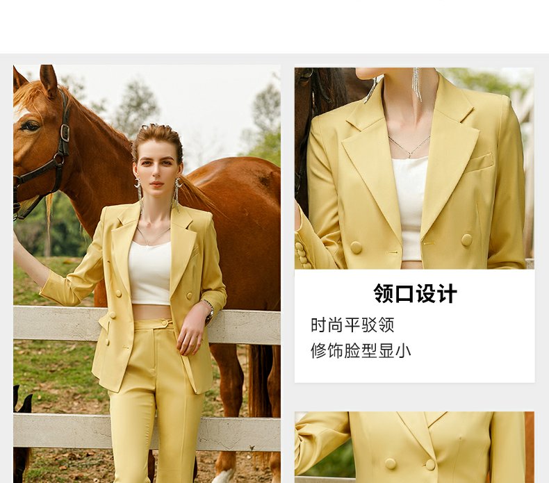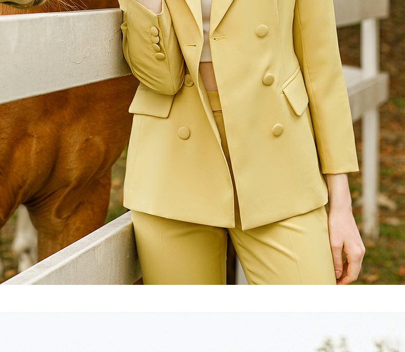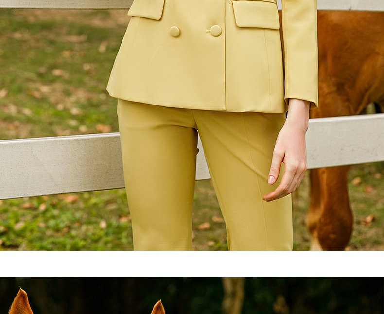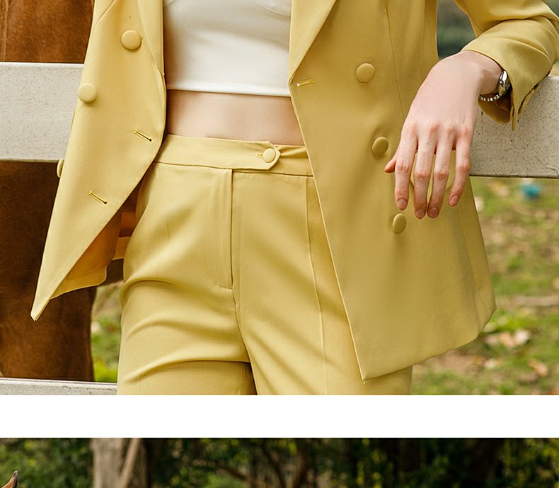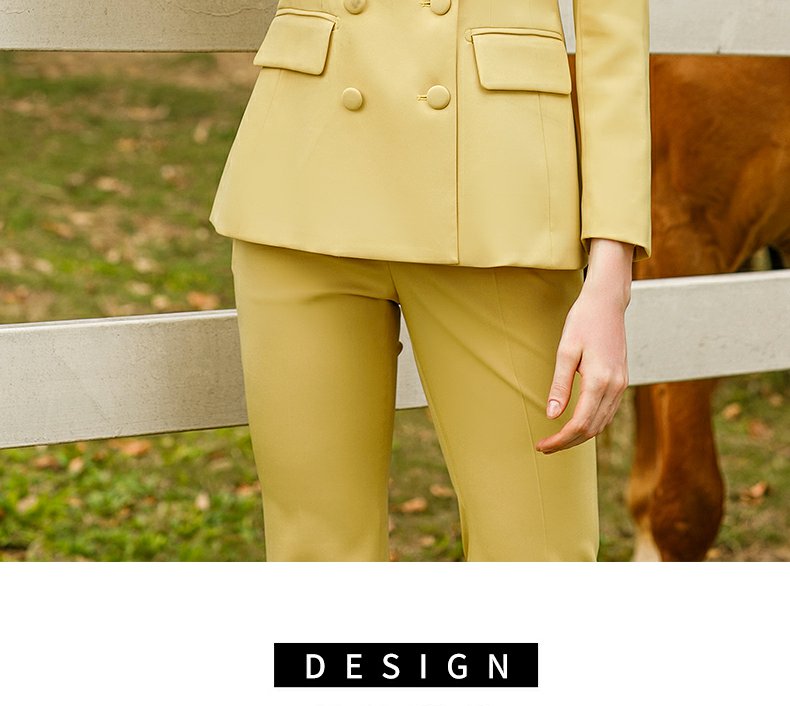 IWY/黄色西装套装长袖高级双排扣总裁西服主持人服装微喇裤工作服221004C1+P3