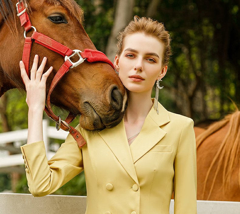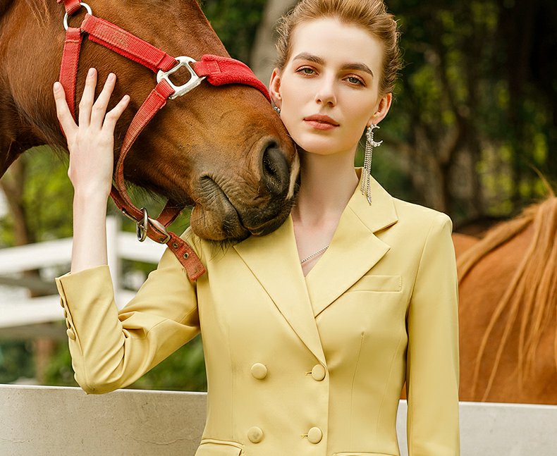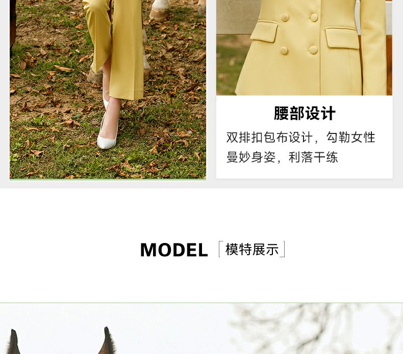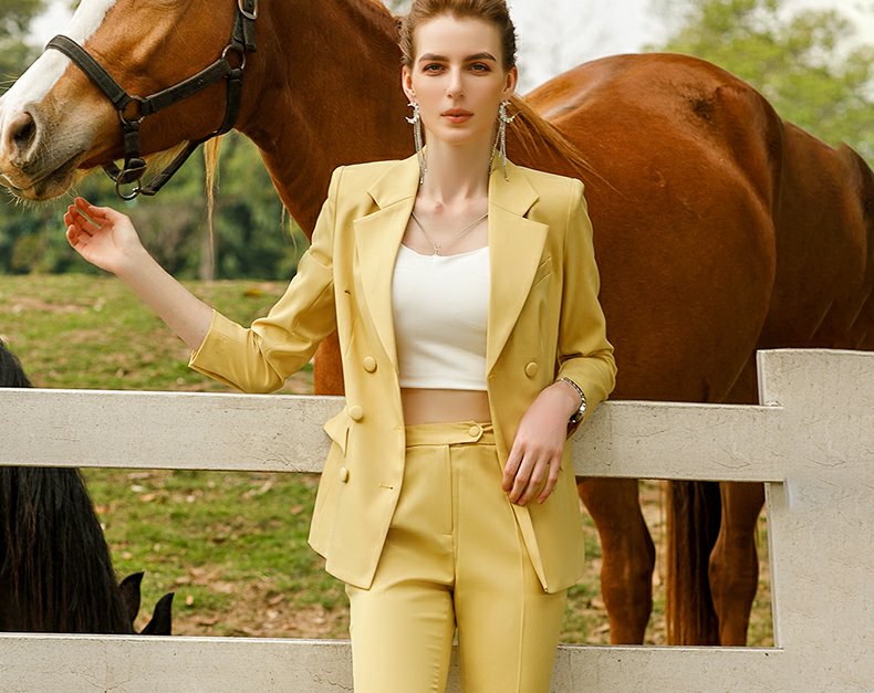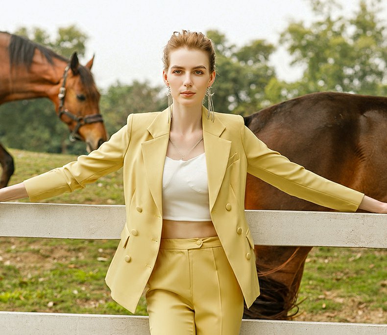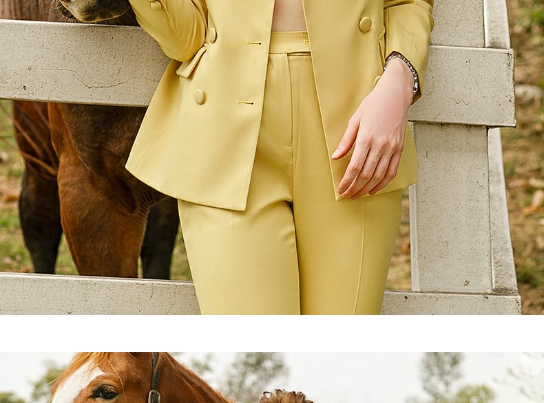 IWY/黄色西装套装长袖高级双排扣总裁西服主持人服装微喇裤工作服221004C1+P3