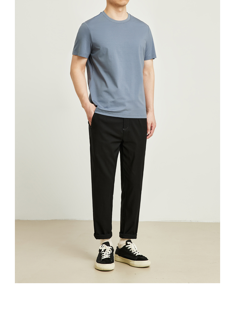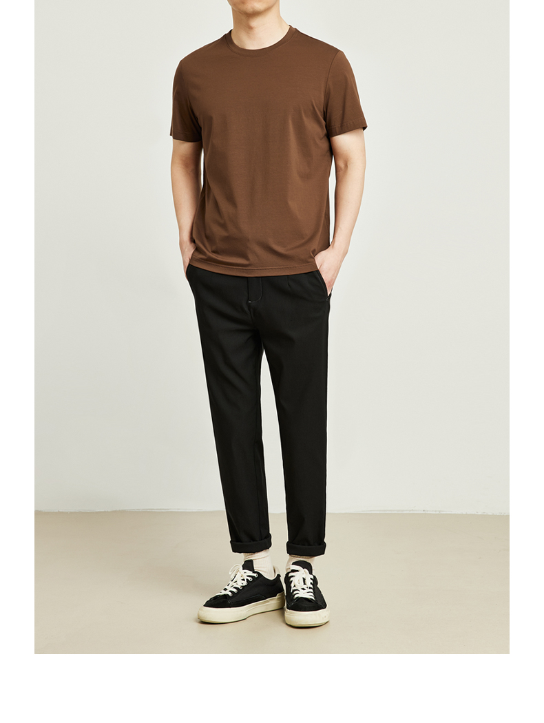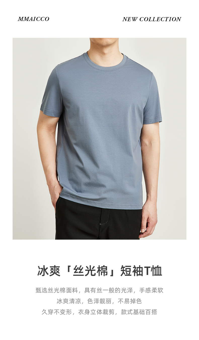墨麦客男装圆领丝光棉2022夏季新款修身纯色男士休闲短袖T恤70523