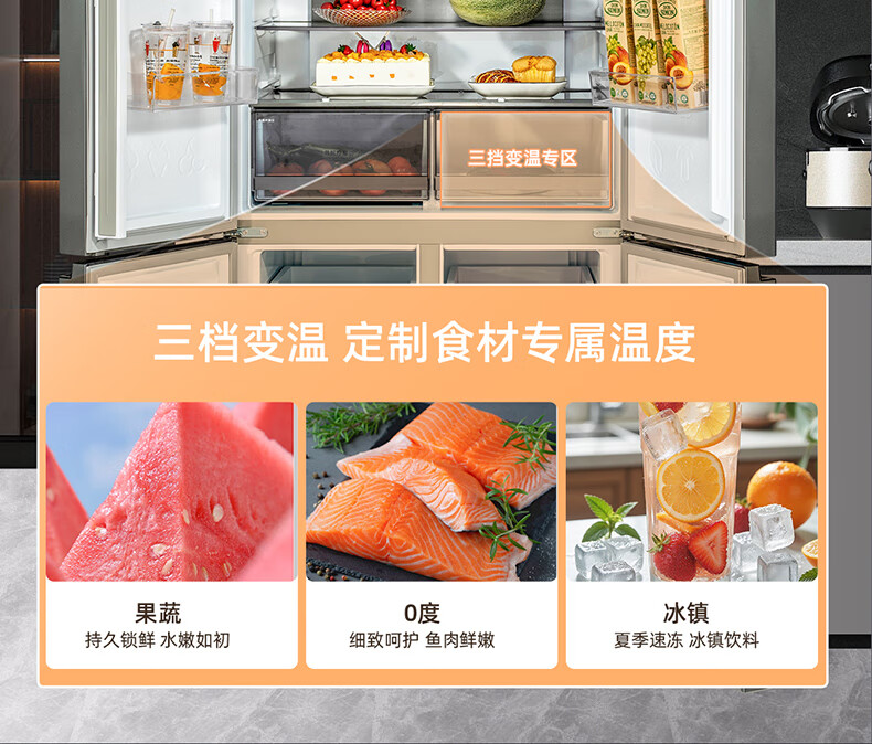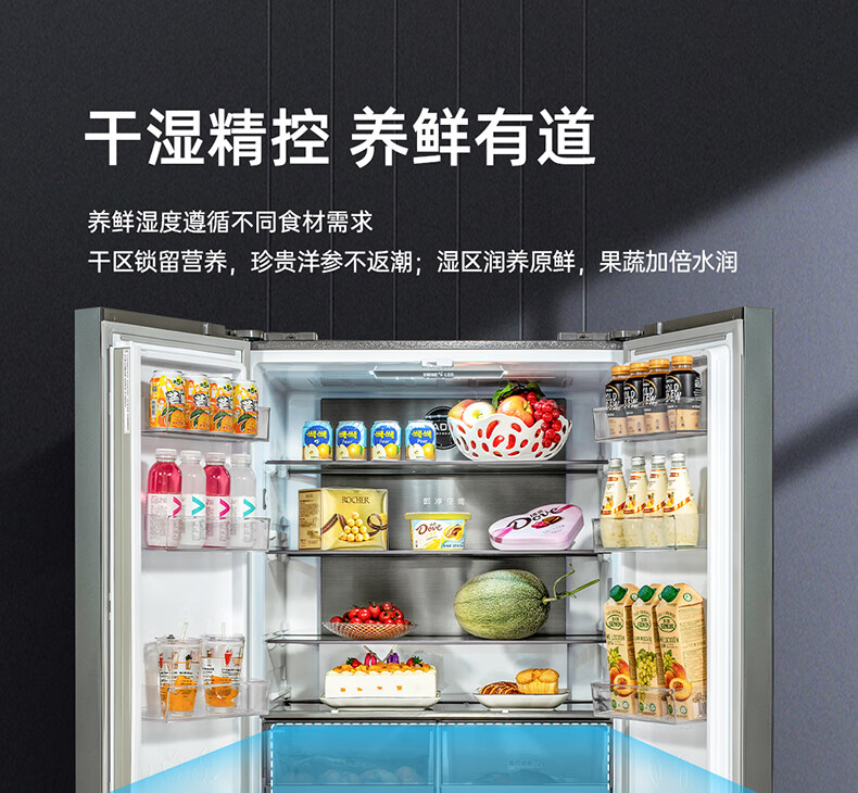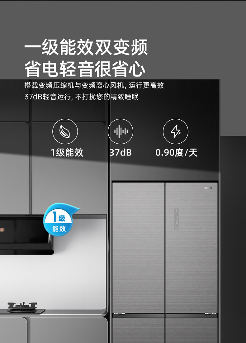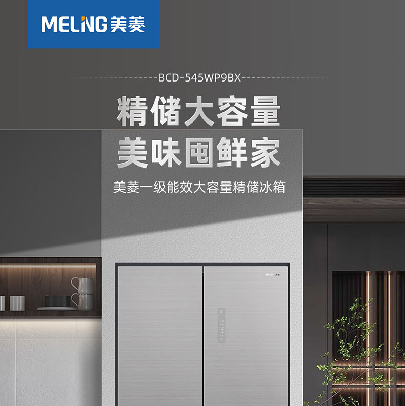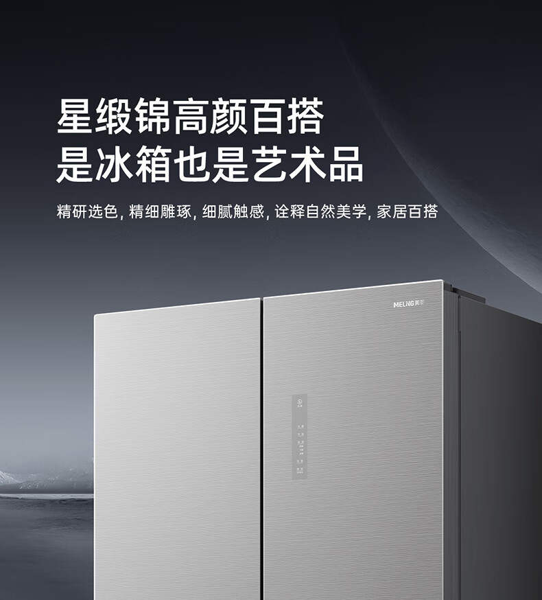 美菱 545升 十字门冰箱 三挡调温 大容量 干湿精控分储 -32°深冷速冻 ADF离子净味 一级双变频BCD-545WP9BX【星缎锦彩晶系列】