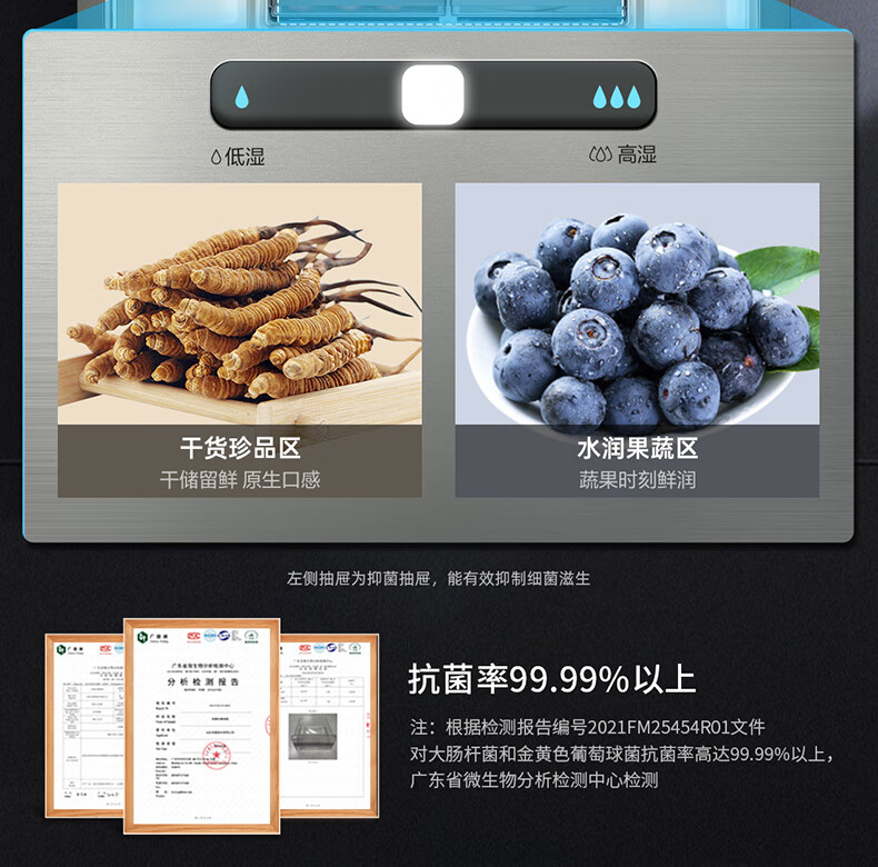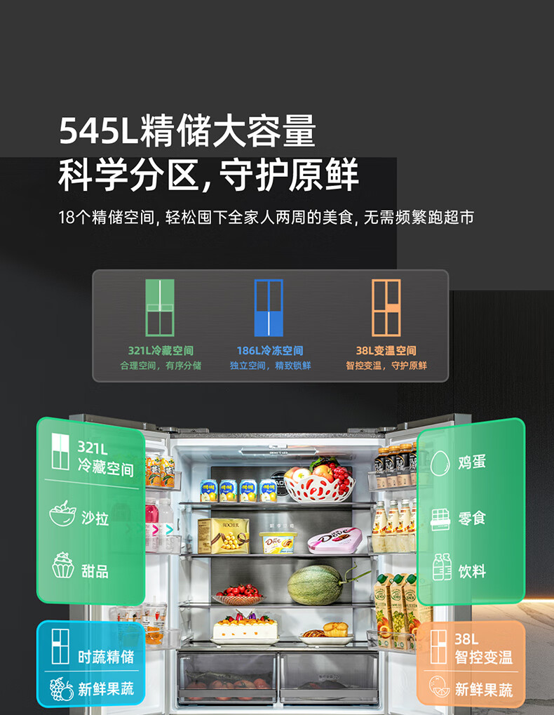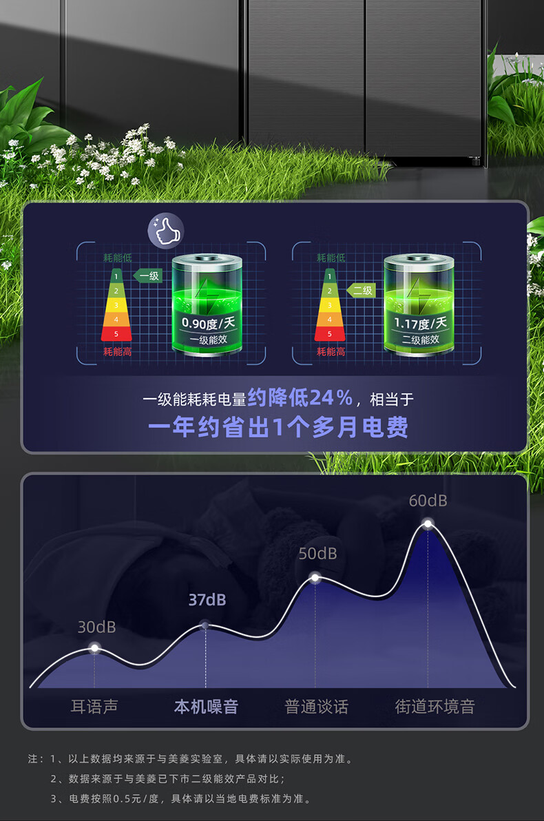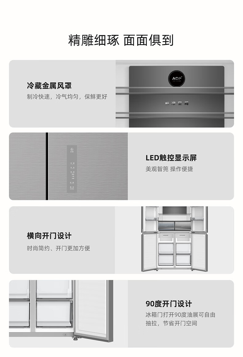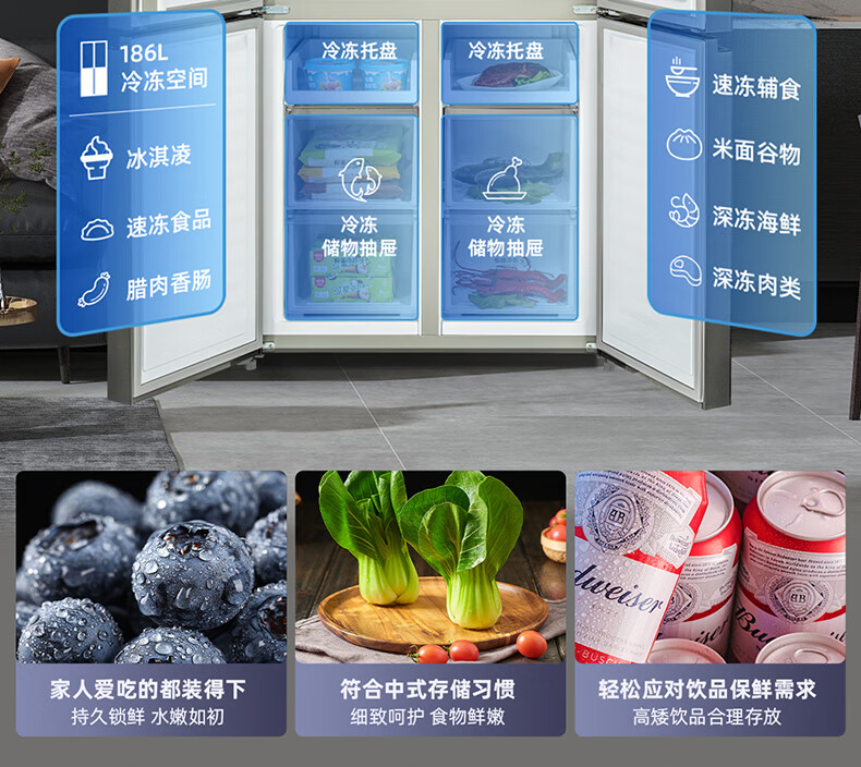 美菱 545升 十字门冰箱 三挡调温 大容量 干湿精控分储 -32°深冷速冻 ADF离子净味 一级双变频BCD-545WP9BX【星缎锦彩晶系列】
