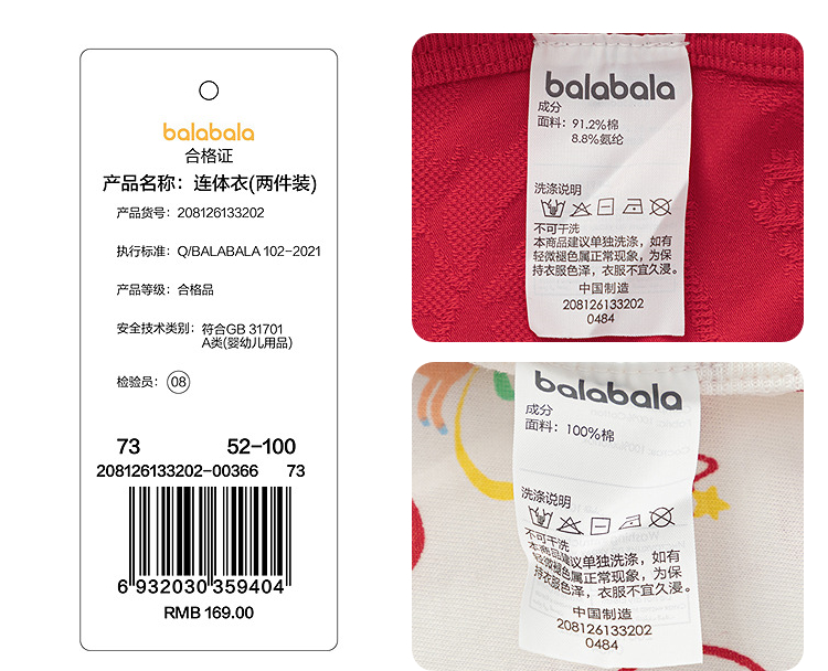 【balaOne】巴拉巴拉童装宝宝内着连体衣2025新款春装两件装亲肤