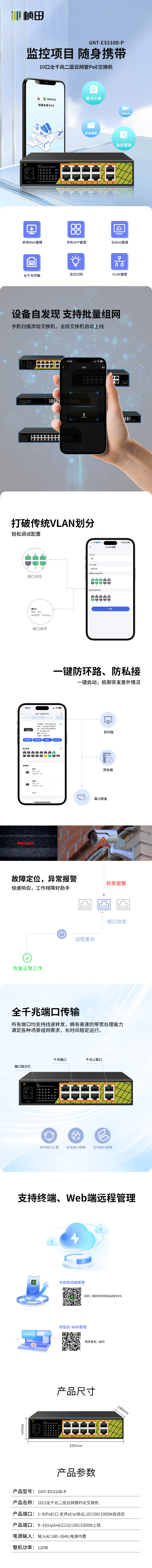 【预售】10口全千兆二层云网管POE交换机(2G+8GP/120W)GNT-ES310D-P