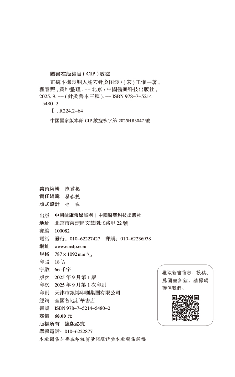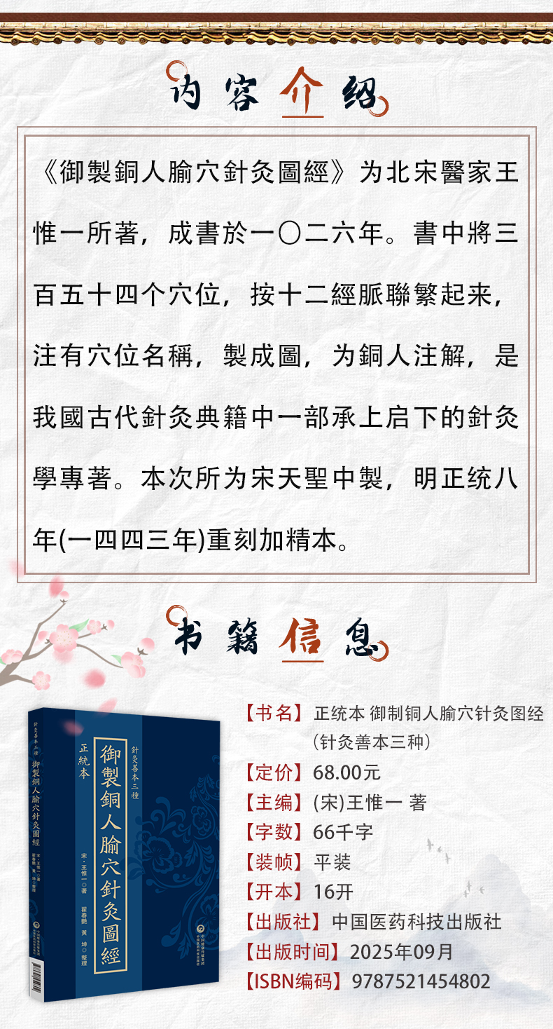 正统本 御制铜人腧穴针灸图经(针灸善本三种)(宋)王惟一著 翟春艳 黄坤 整理 中医古籍临床医学9787521454802中国医药科技出版社