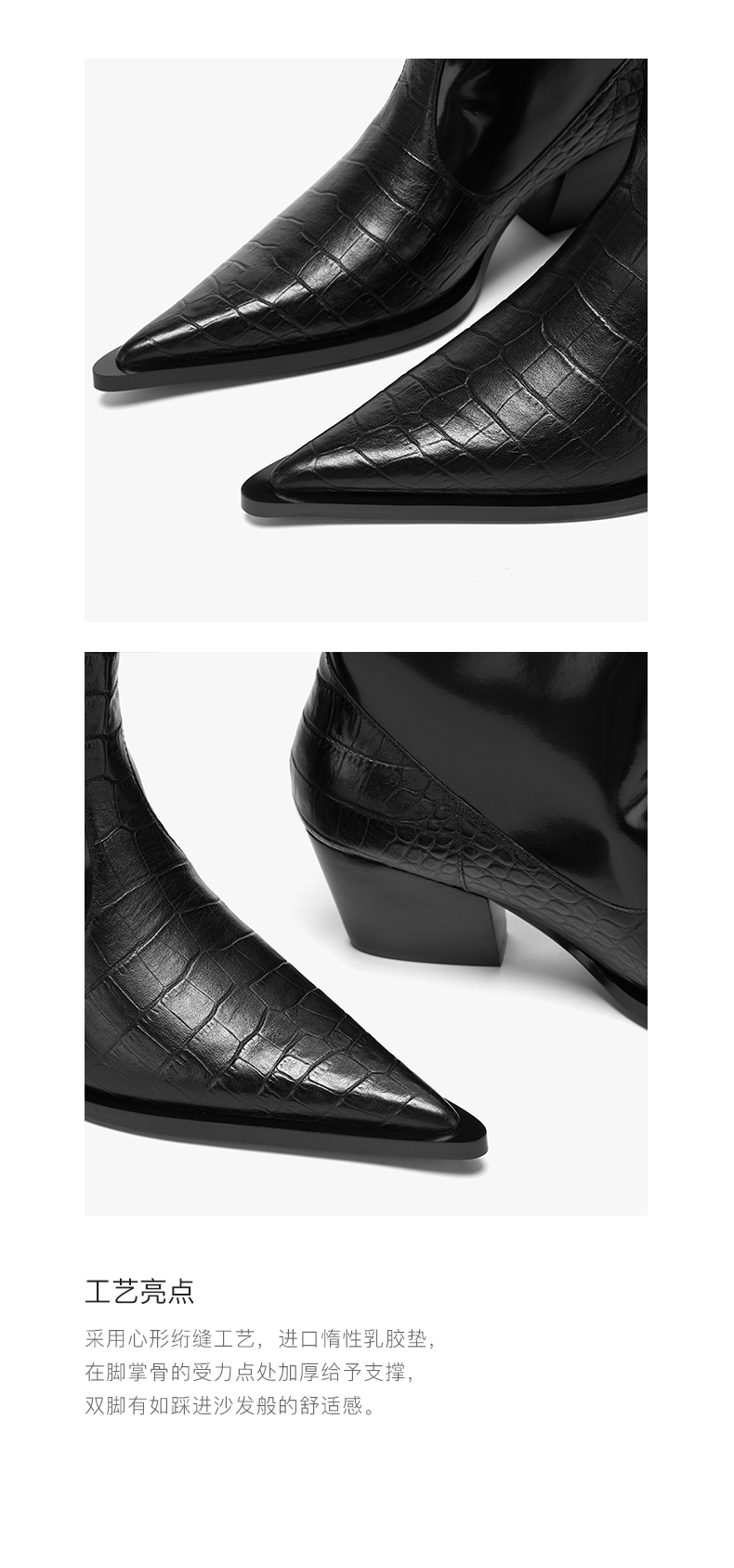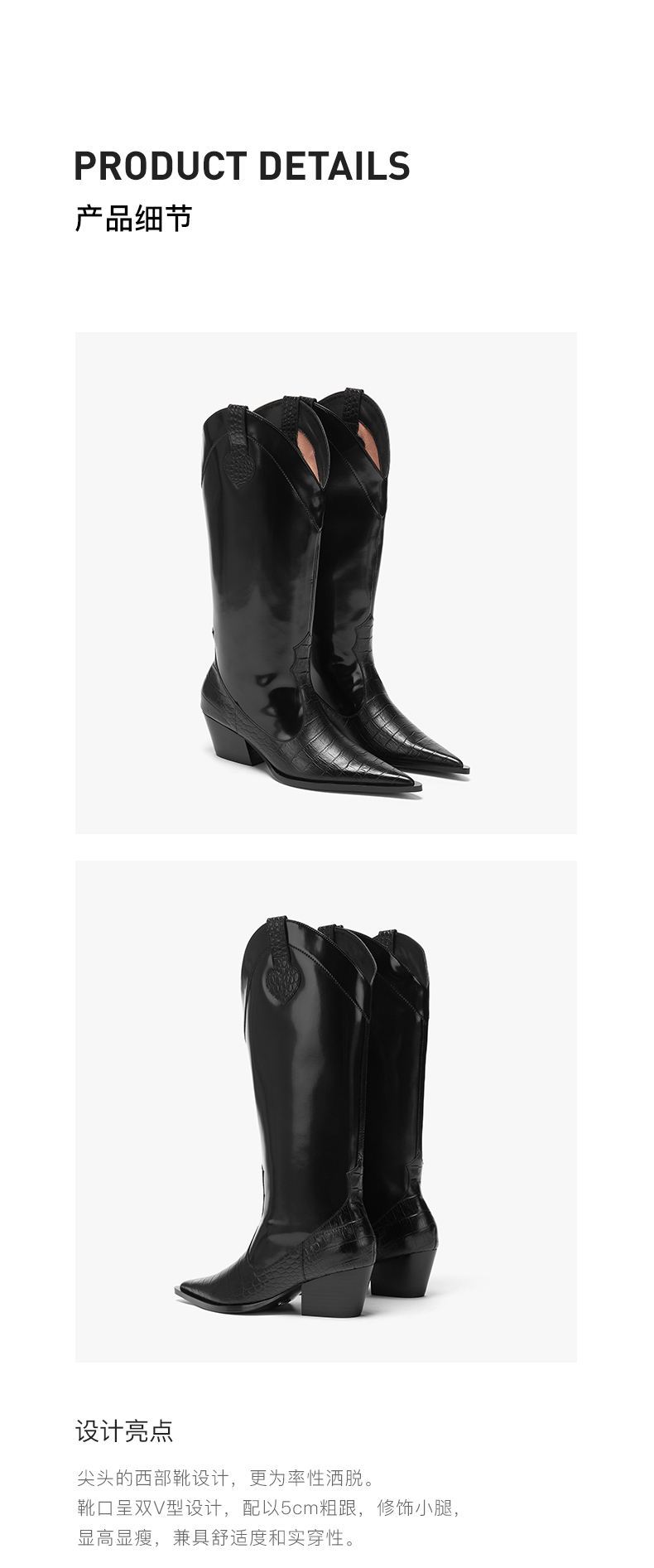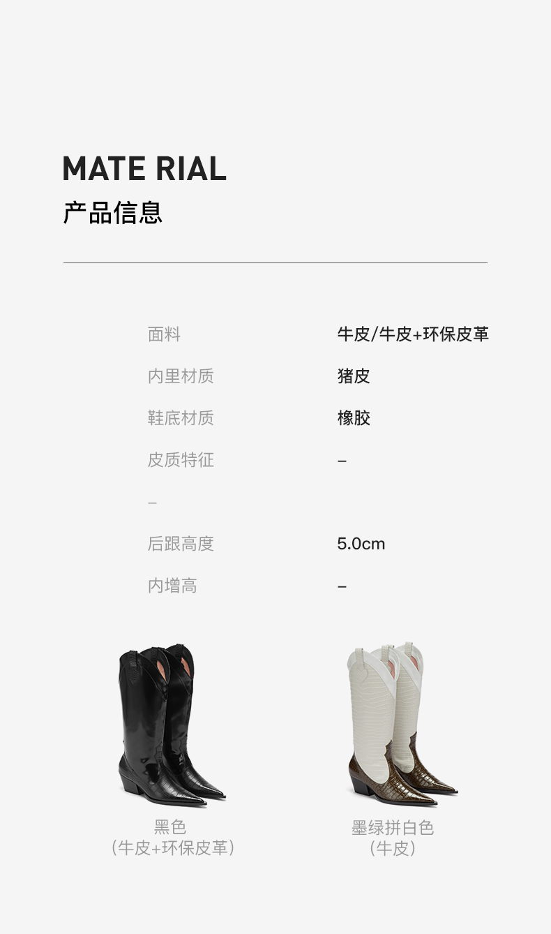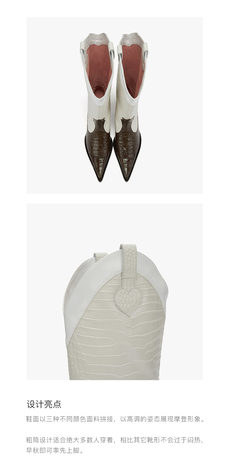 lost in echo 原创设计师品牌 尖头牛皮拼接西部中高筒靴