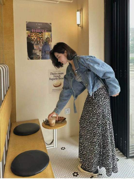 🌹碎花裙搭牛仔外套 休闲减龄穿搭,不挑年龄,适合大众人群