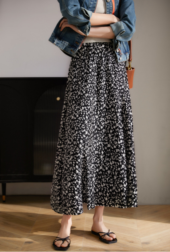 🌳【法国高级繁花压褶碎花半身裙】✅进口机压褶,褶皱裙摆🌈 ✅定制印花面料,超强肌理感,自然垂坠
