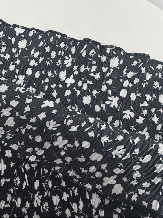 用料超足,裙长到小腿肚!加长款! 进口机重工压褶,激光切割裙摆 自然垂坠有型,超强肌理感,第一眼高级到爆! 上身真的修身!超级显瘦! 大裙摆,垂感好,随意搭配都非常惊艳‼ 整条工艺都非常繁琐! 面料纹理特别细腻,一看就是专柜大几百品质! 不是市场通货会用的面料和工艺 所以不要拿市面三四十的碎花比! 拿到手一看便知,完全不是一个级别!!