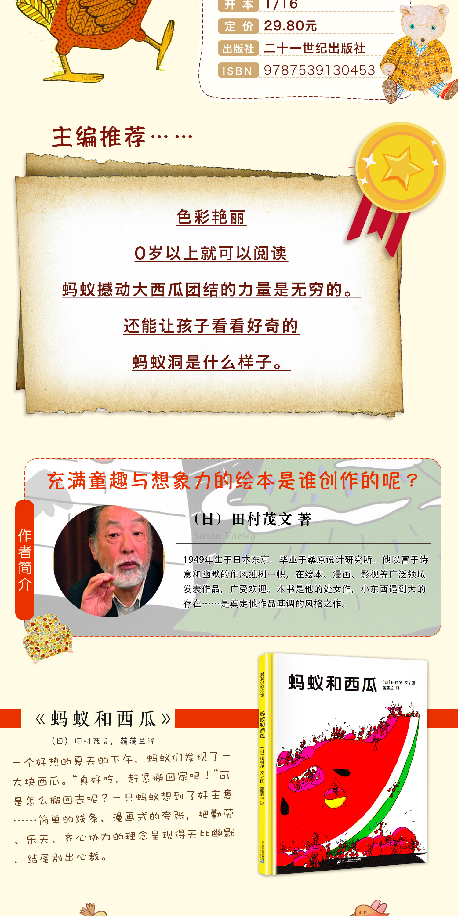 蚂蚁和西瓜 精装硬壳蒲蒲兰幼儿童绘本故事亲子阅读幼儿园老师推荐大班小班中班早教图画书0-2-3-4-5-6周岁宝宝睡前启蒙读物正版