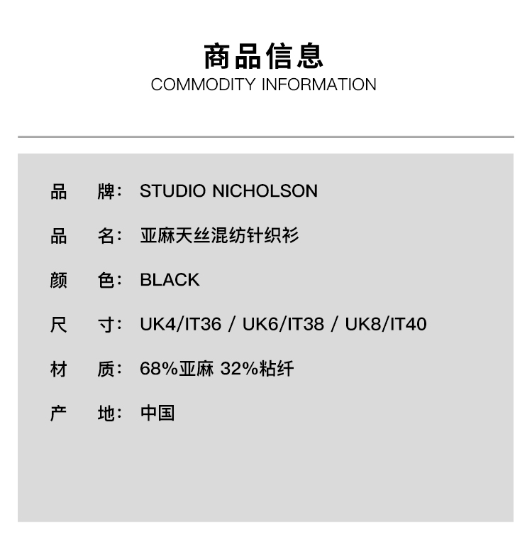 STUDIO NICHOLSON KNITWEAR - ROUND NECK女式亚麻天丝混纺针织衫