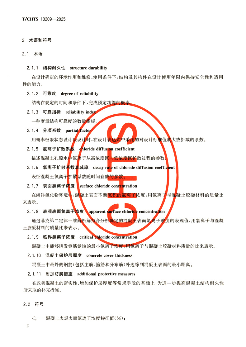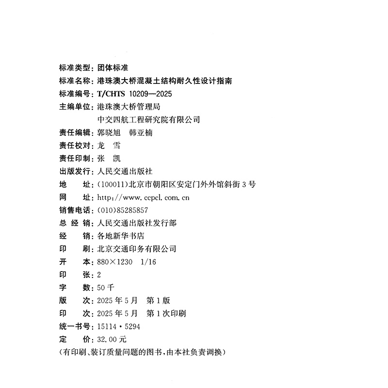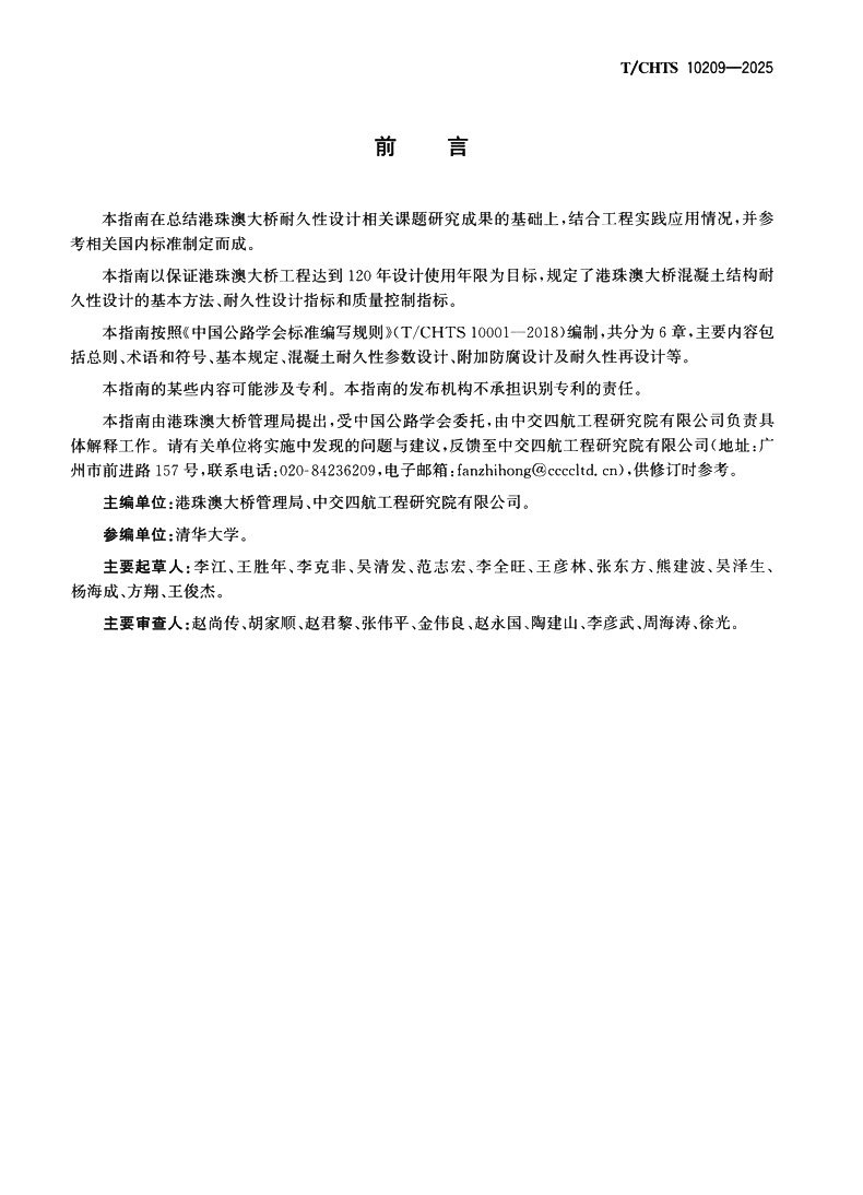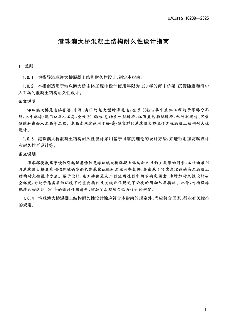 书名:港珠澳大桥混凝土结构耐久性设计指南(T/CHTS 10209—2025)