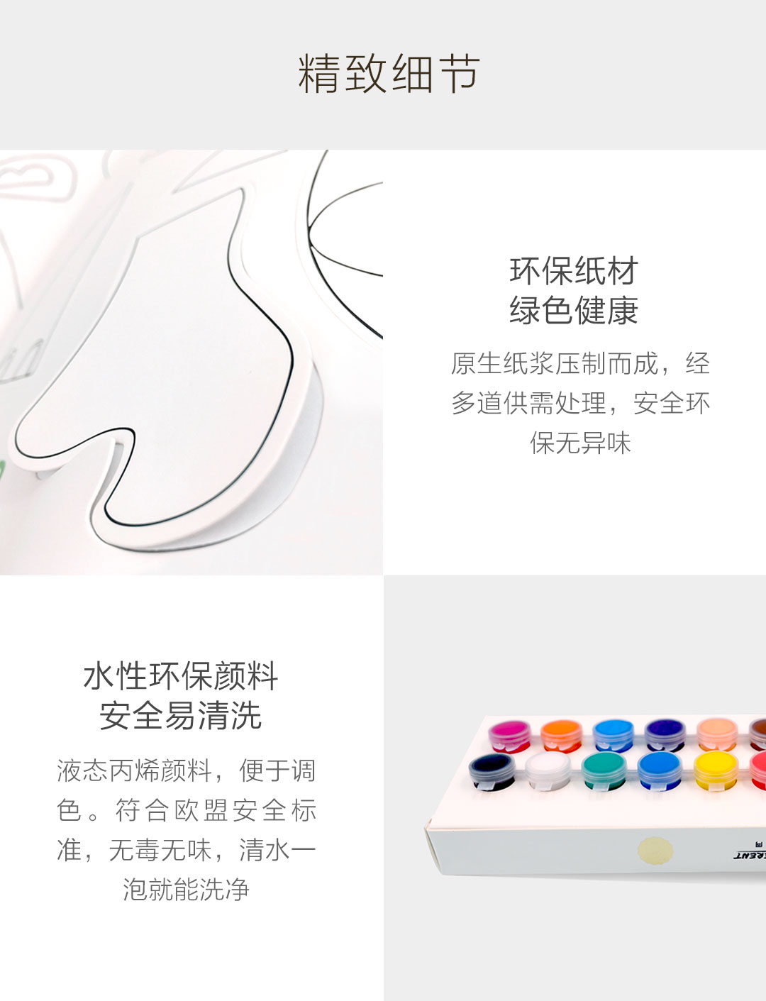 环保原生纸材,安全无异味;水性环保颜料,无毒无味,安全易清洗。