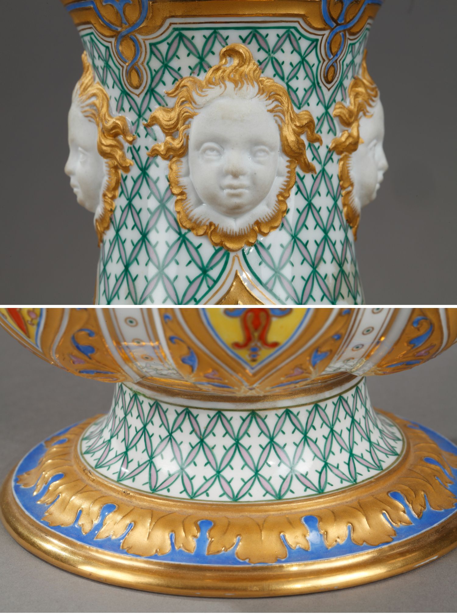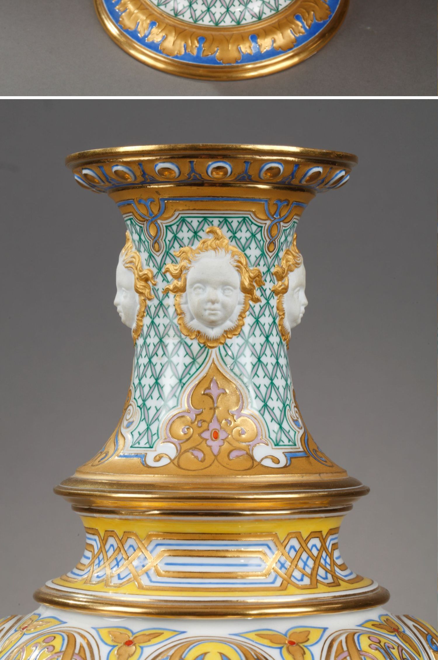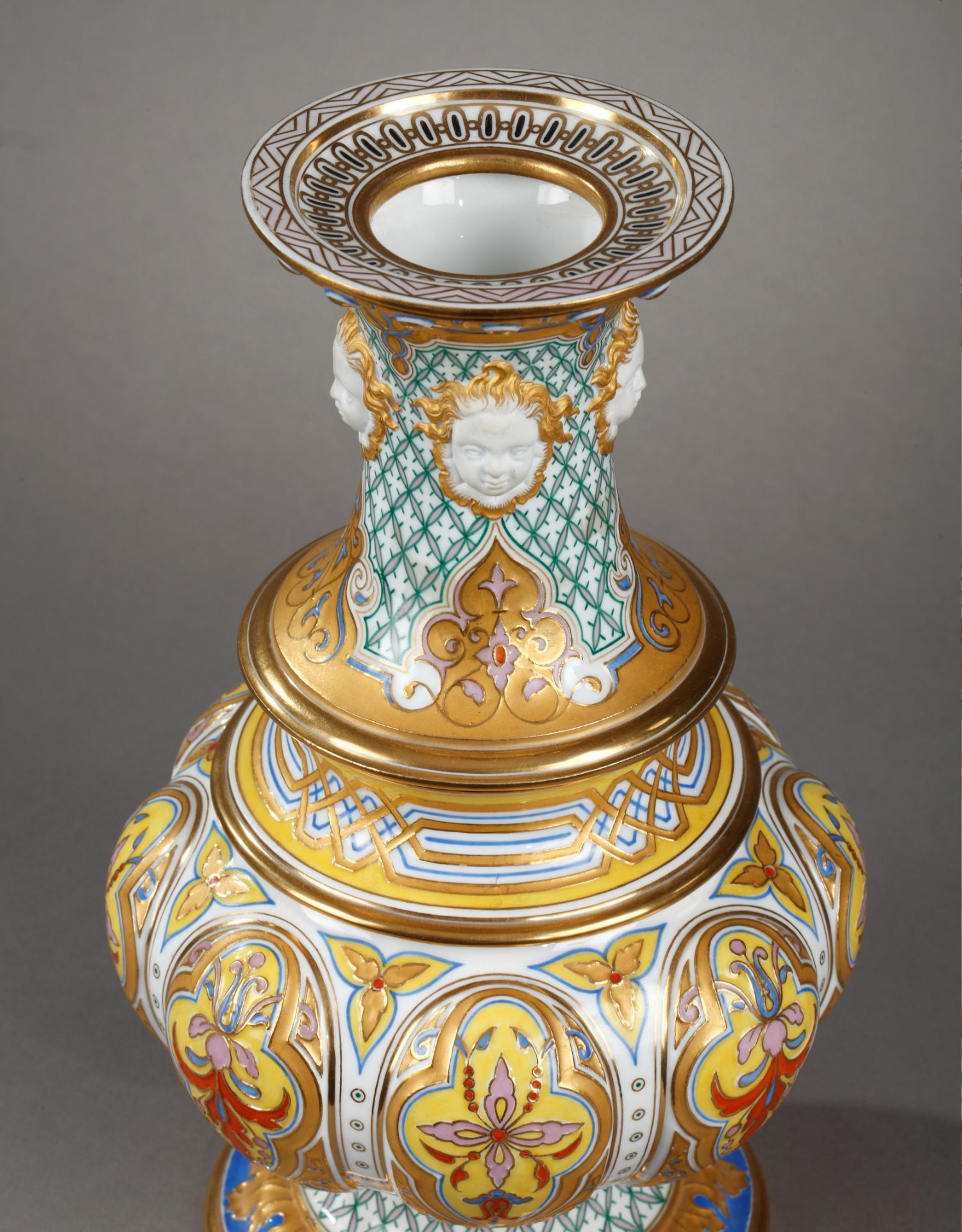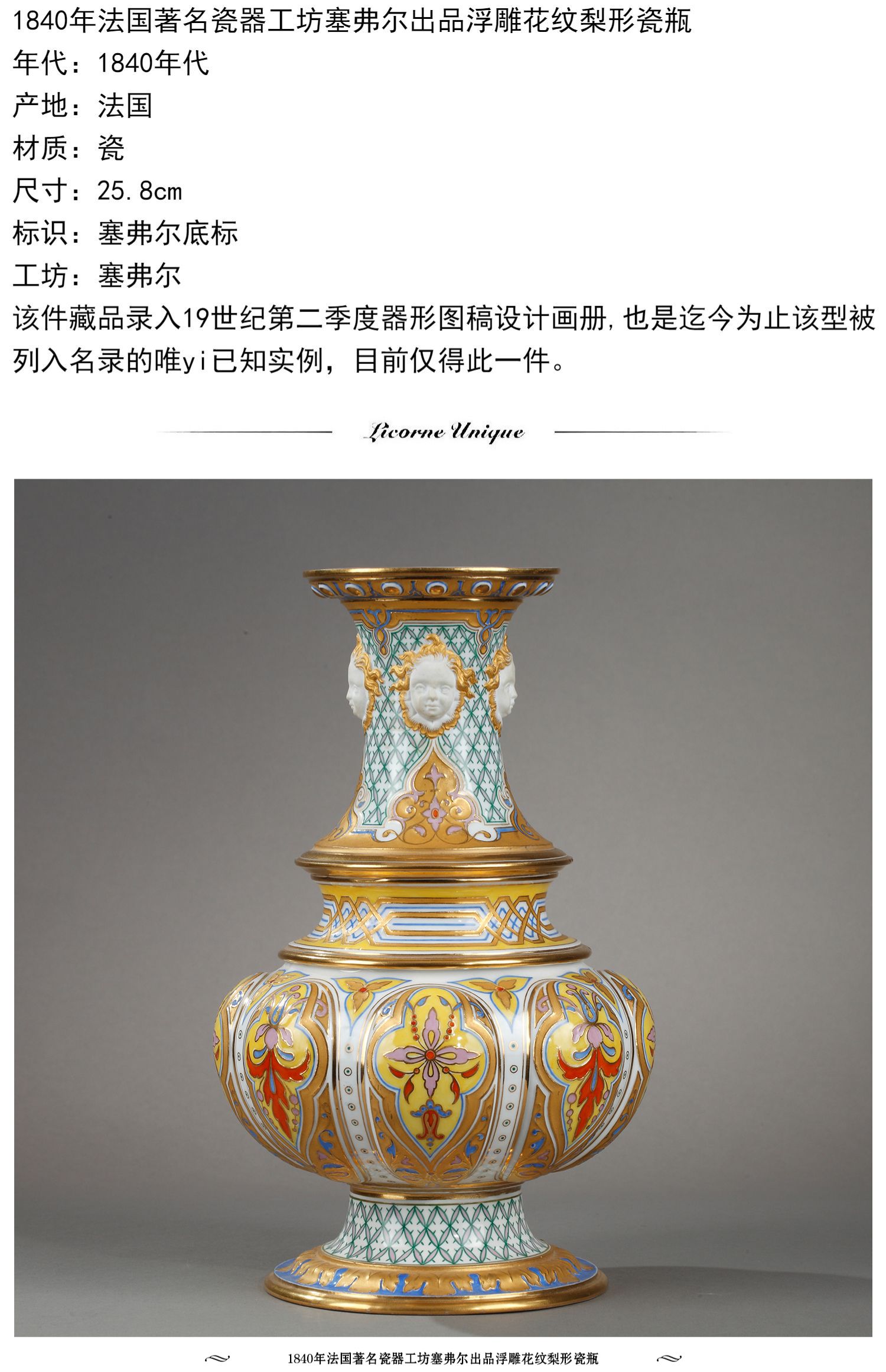 独角鹿西洋古董瓷器1840年法国工坊塞弗尔浮雕花纹梨形瓷瓶花瓶
