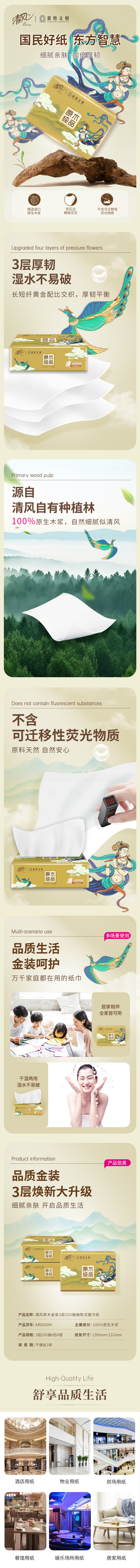 清风&敦煌文创原木纯品系列3层100抽纸巾AR60SDH 6/12/24包(QF)
