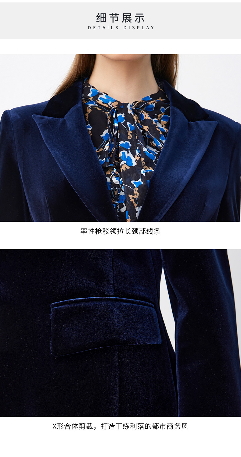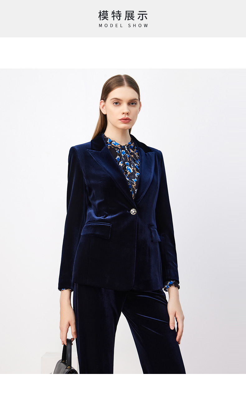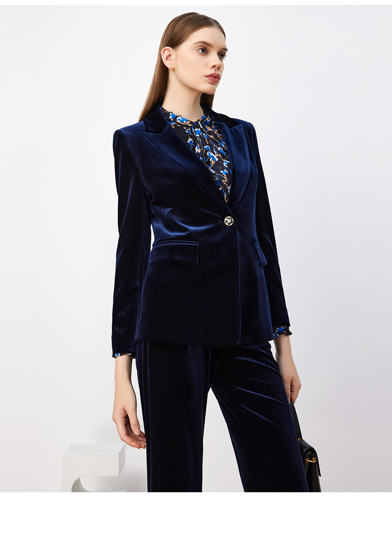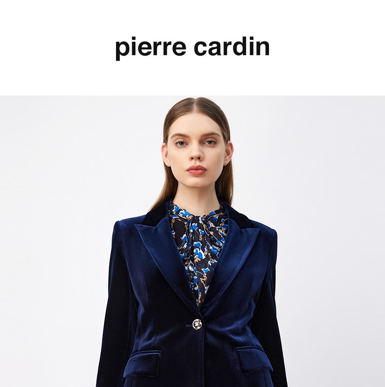 皮尔卡丹女装西装秋丝绒法式一粒扣收腰V领西服上衣P3320U3971N0