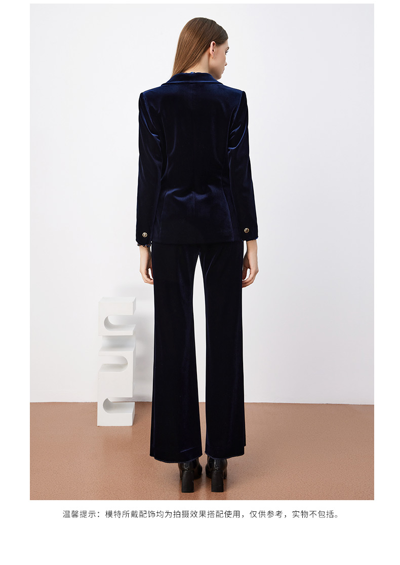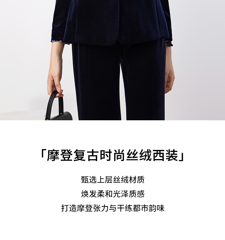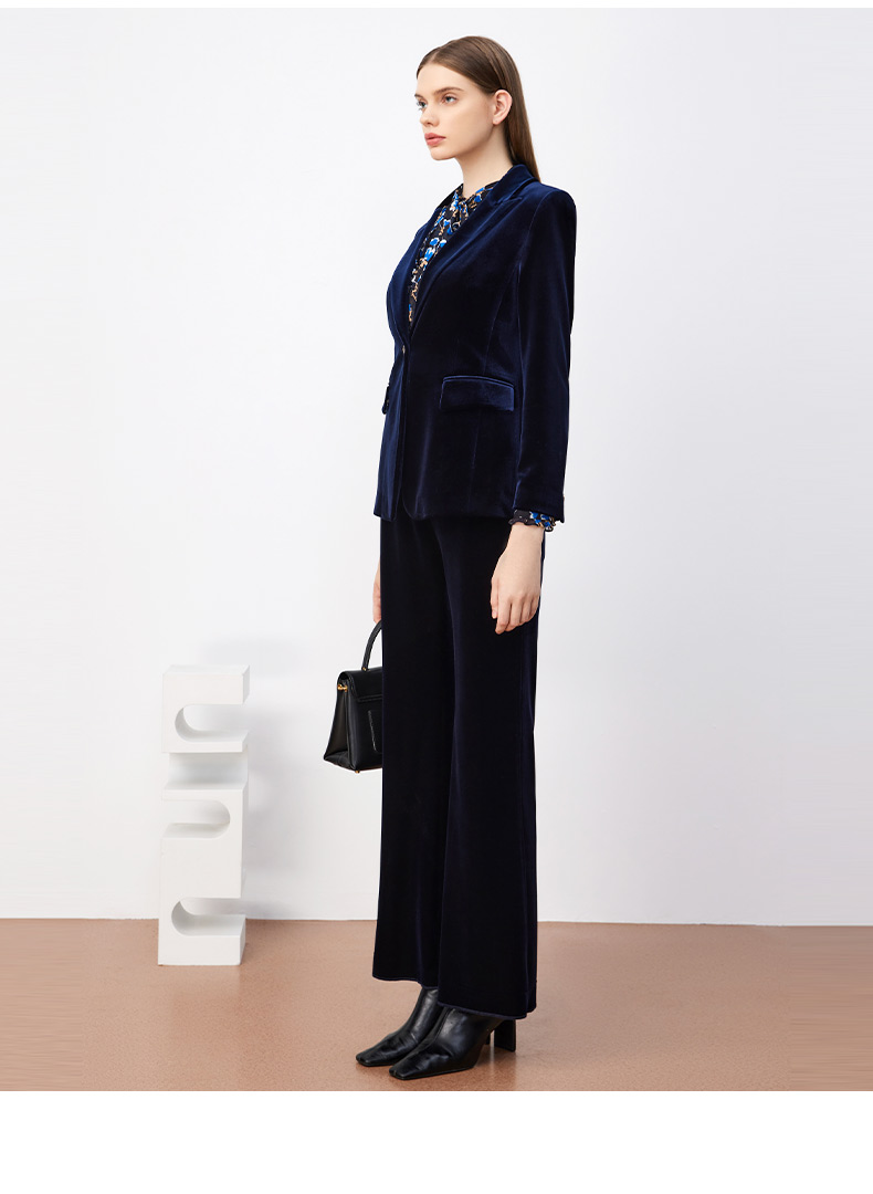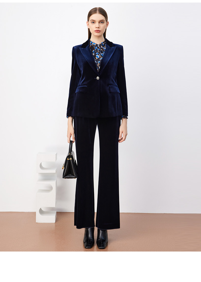 皮尔卡丹女装西装秋丝绒法式一粒扣收腰V领西服上衣P3320U3971N0