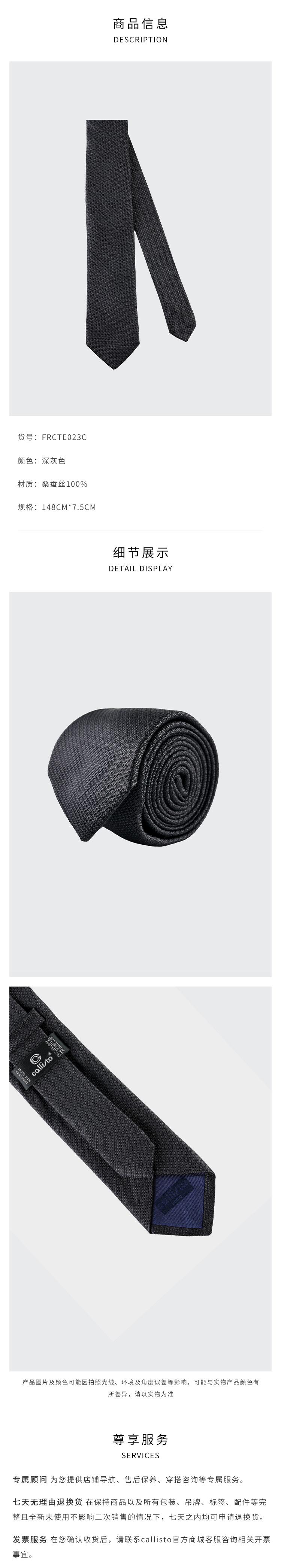 callisto深灰色全桑蚕丝领带 FRCTE023C
