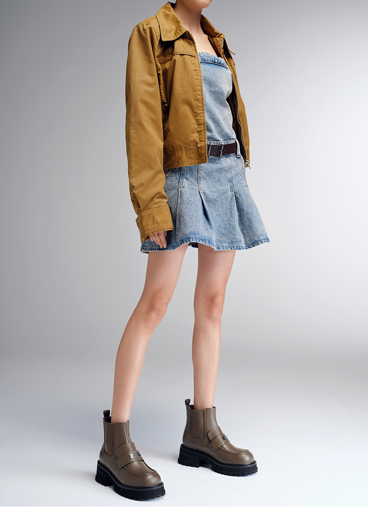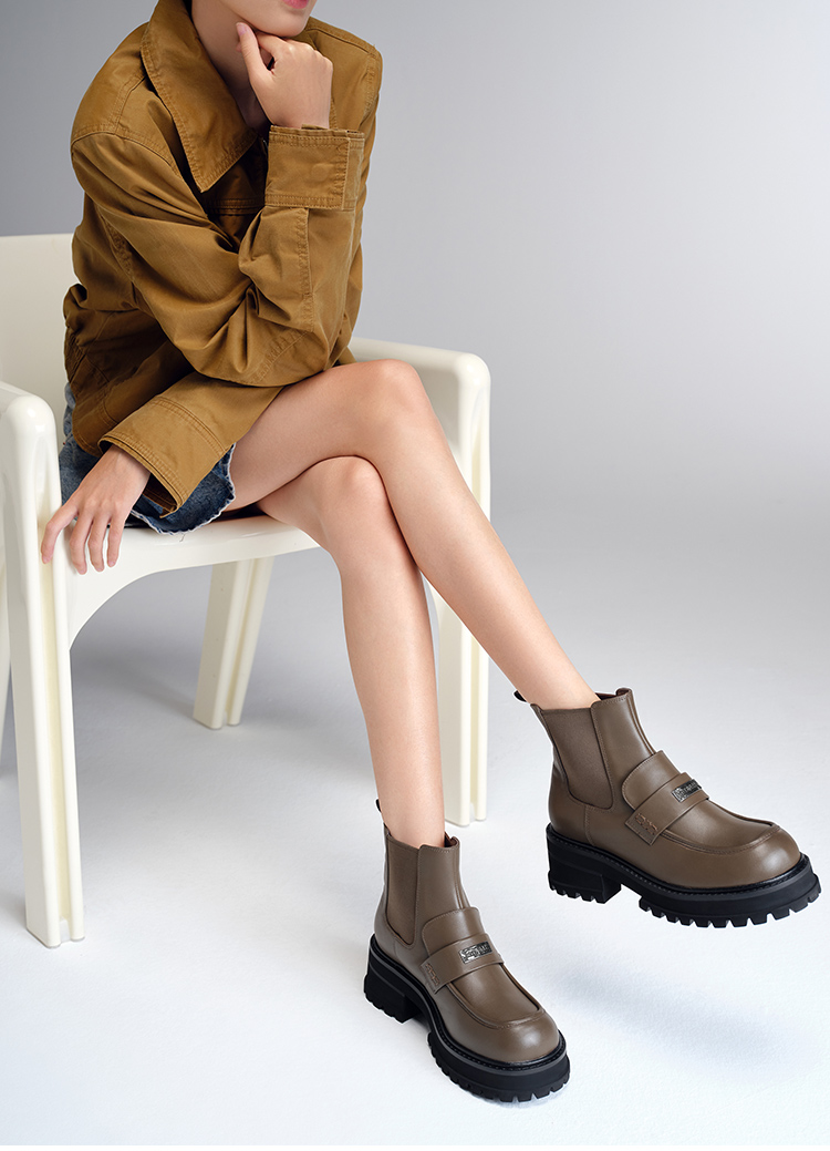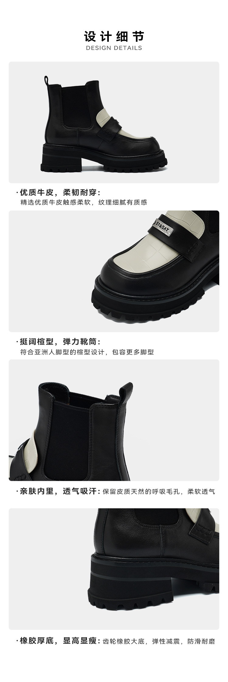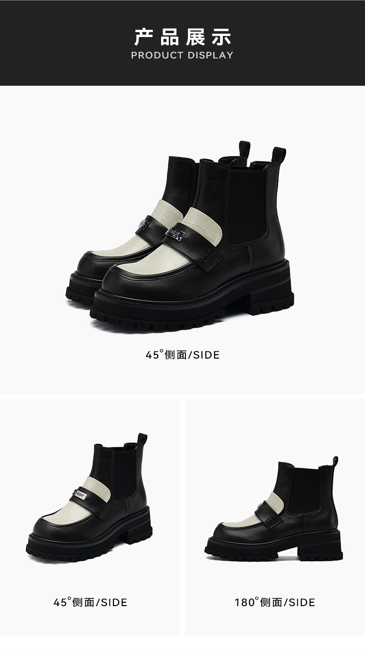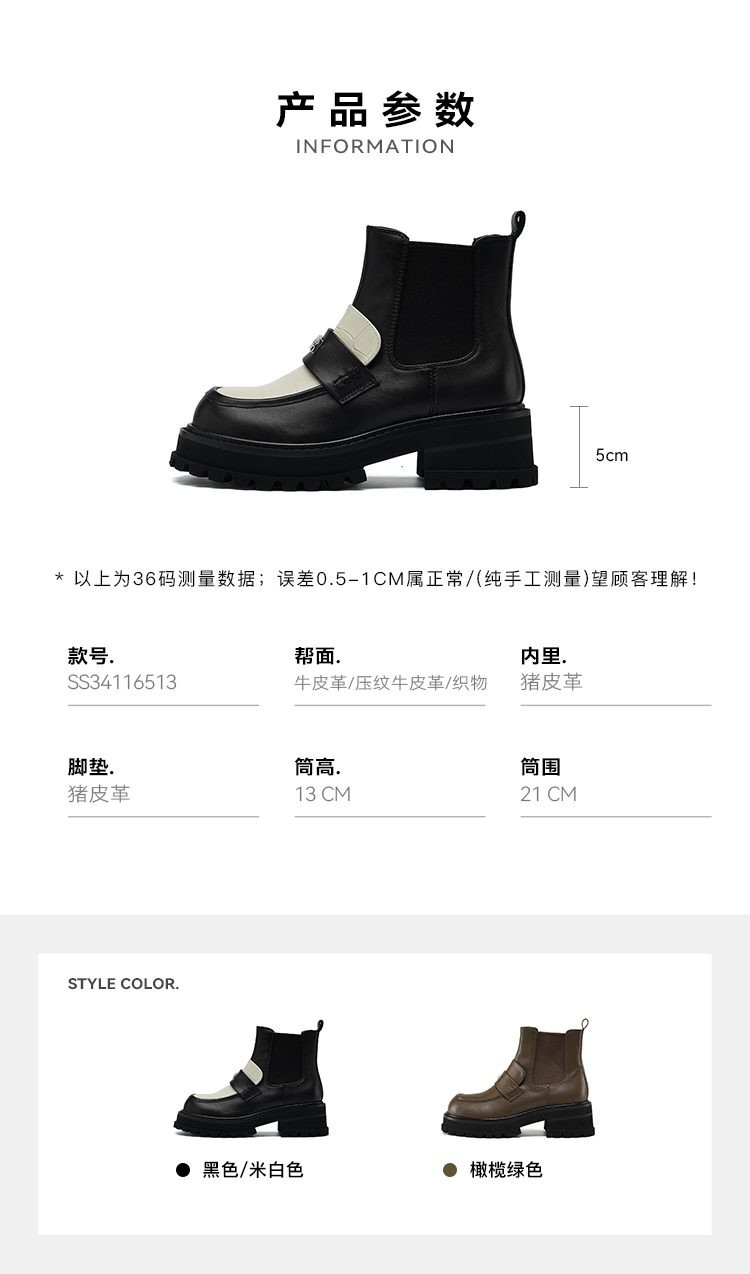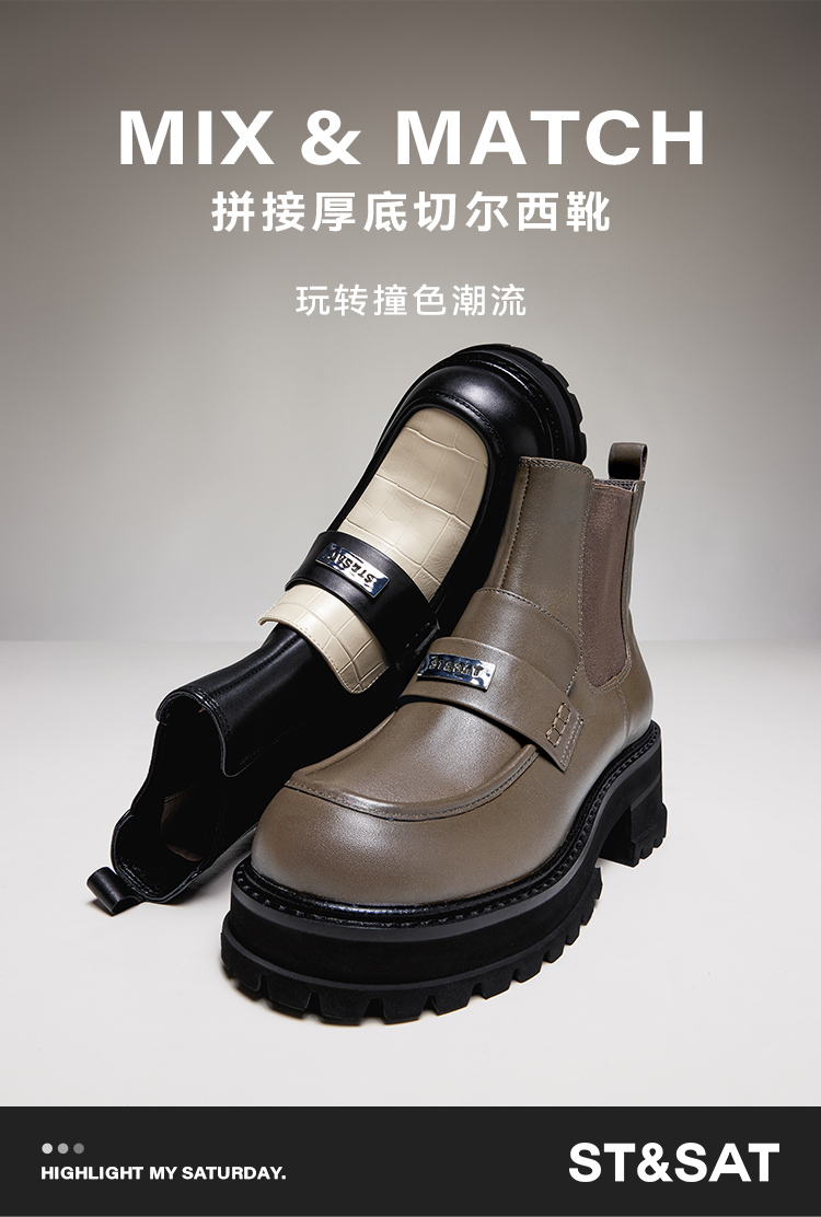 星期六英伦拼色松糕厚底烟筒短靴SS34116513