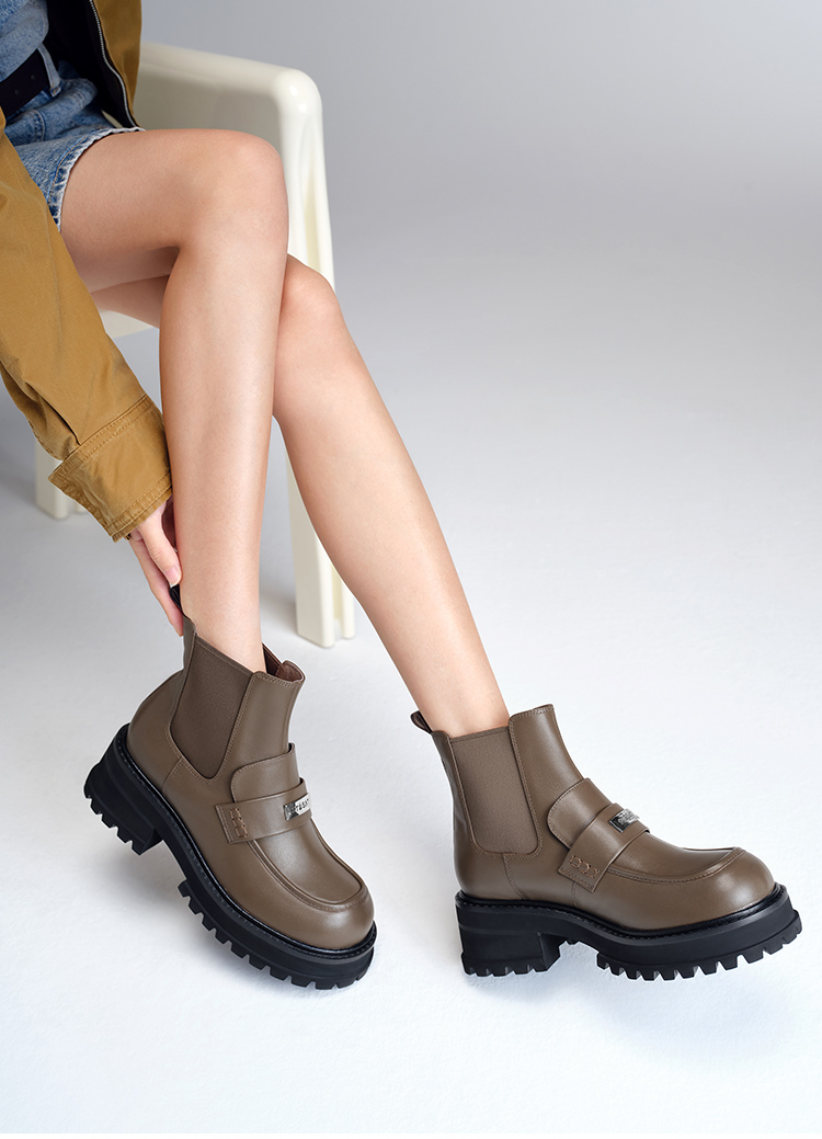星期六金属扣饰粗高跟法式短靴SS33112177