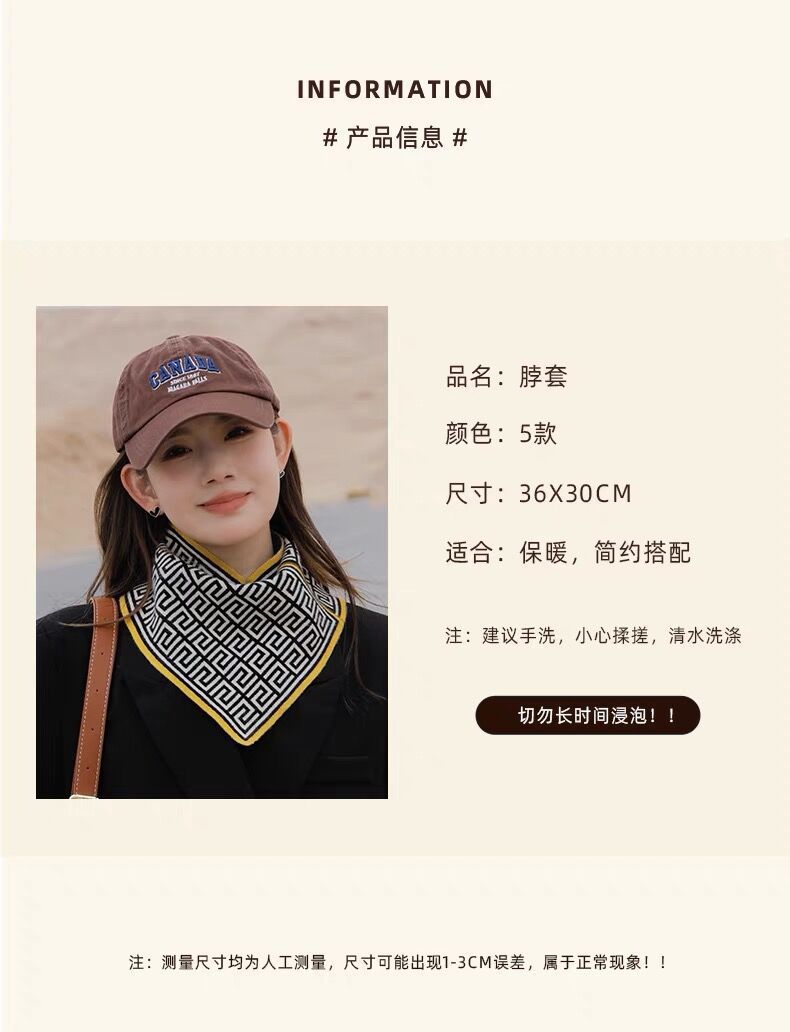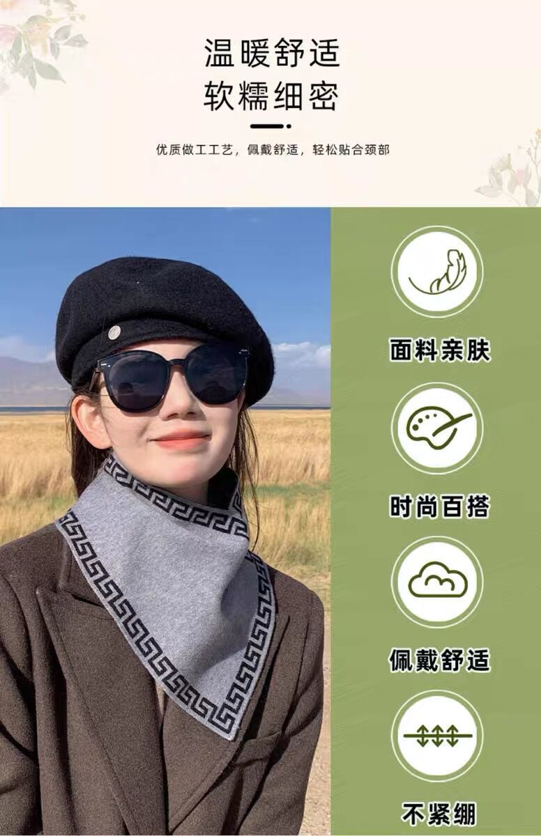 「买1送1!9.9到手两条」菲灵新款三角巾围巾女秋冬保暖方巾围脖护颈椎装饰假领子毛线脖套配饰 商品图4