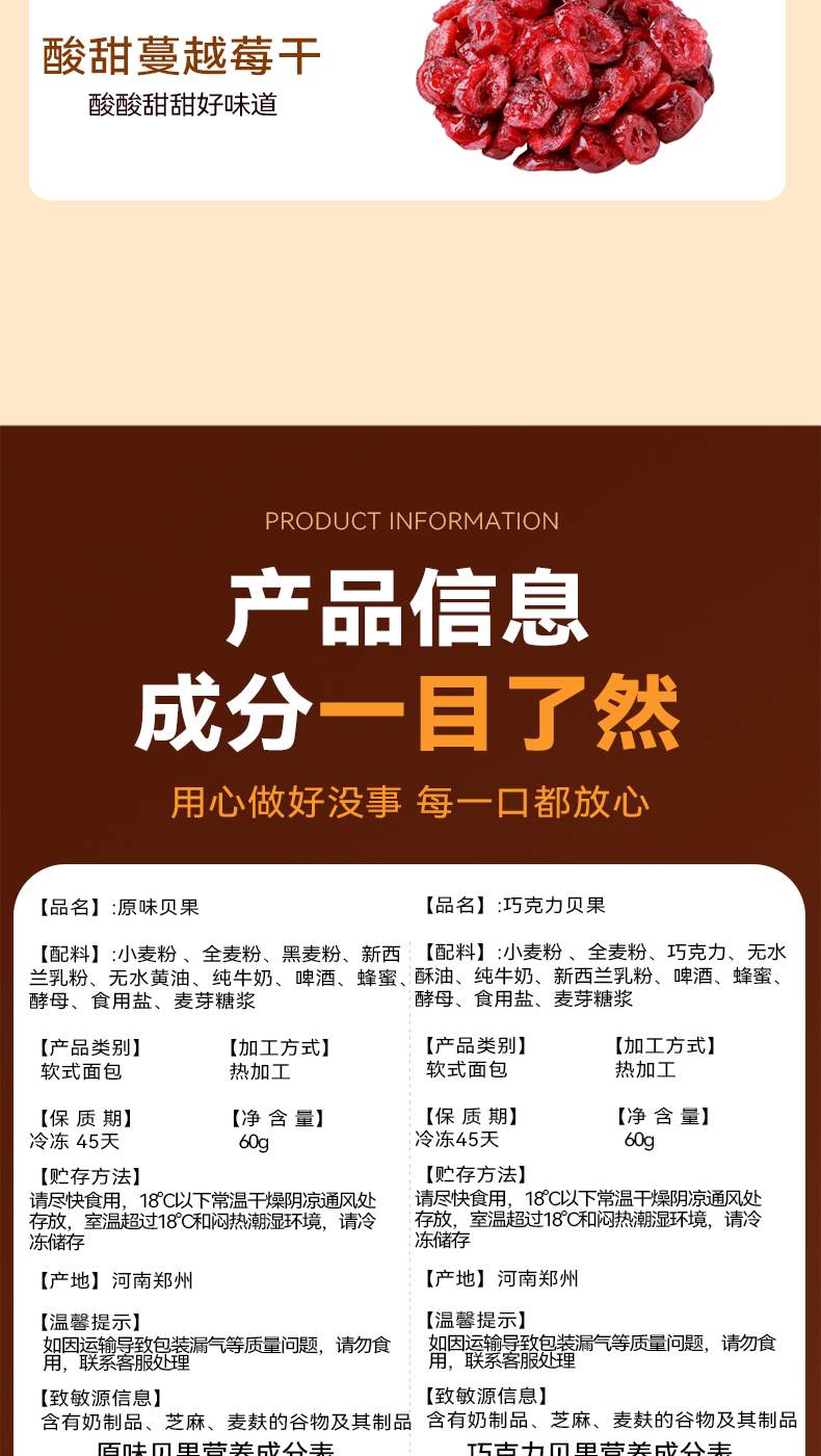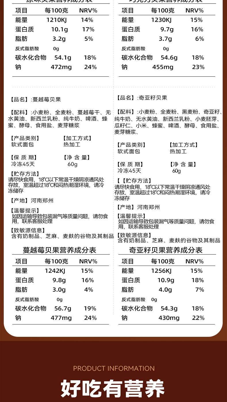 ★规格:全麦原味8个装/蔓越莓8个装/奇亚籽8个装/巧克力8个装/四口味混合装(各2个)