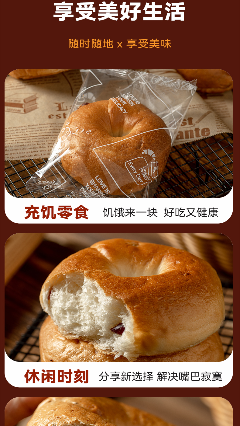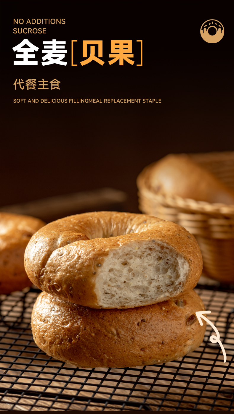 【60g*8个】麦可琪全麦贝果面包 独特烫面工艺老面种发酵 蜂蜜替代蔗糖口感坚韧 越嚼越香