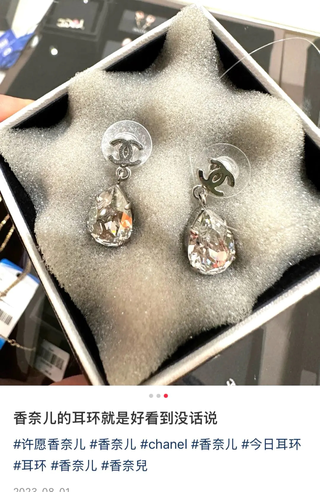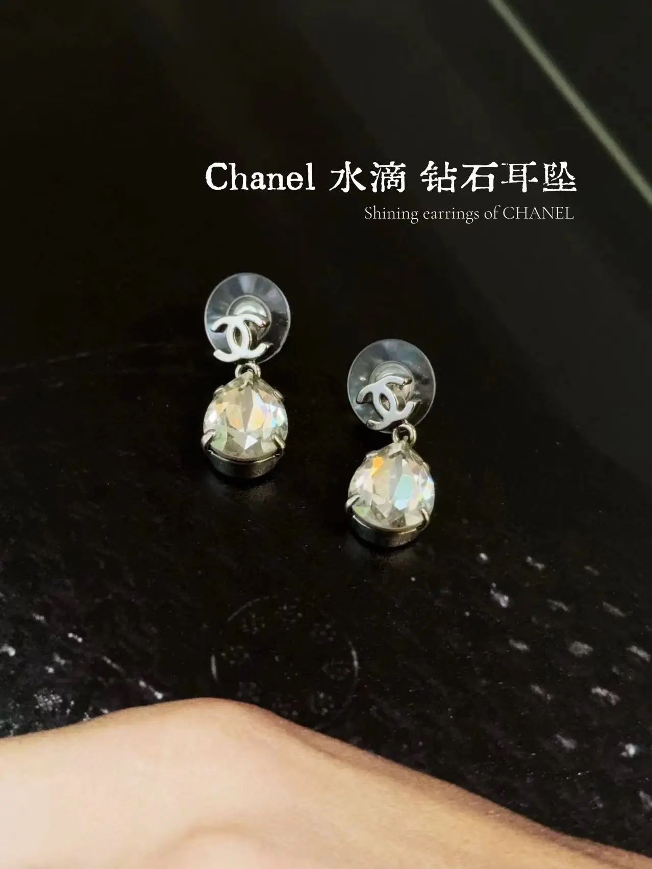 【商品详情】💰2580!正品二手 Chanel 水钻 水滴 耳环💎98新 2cm。Angelababy同款
