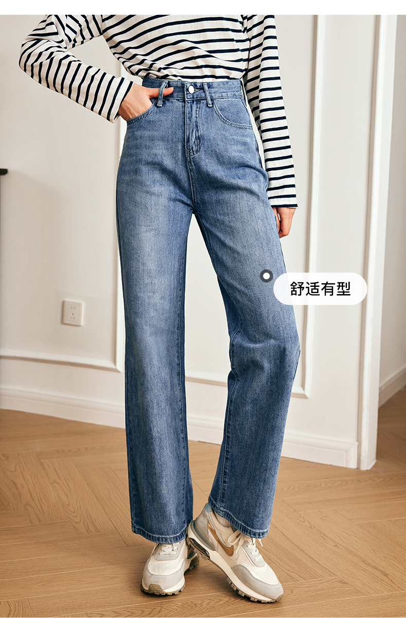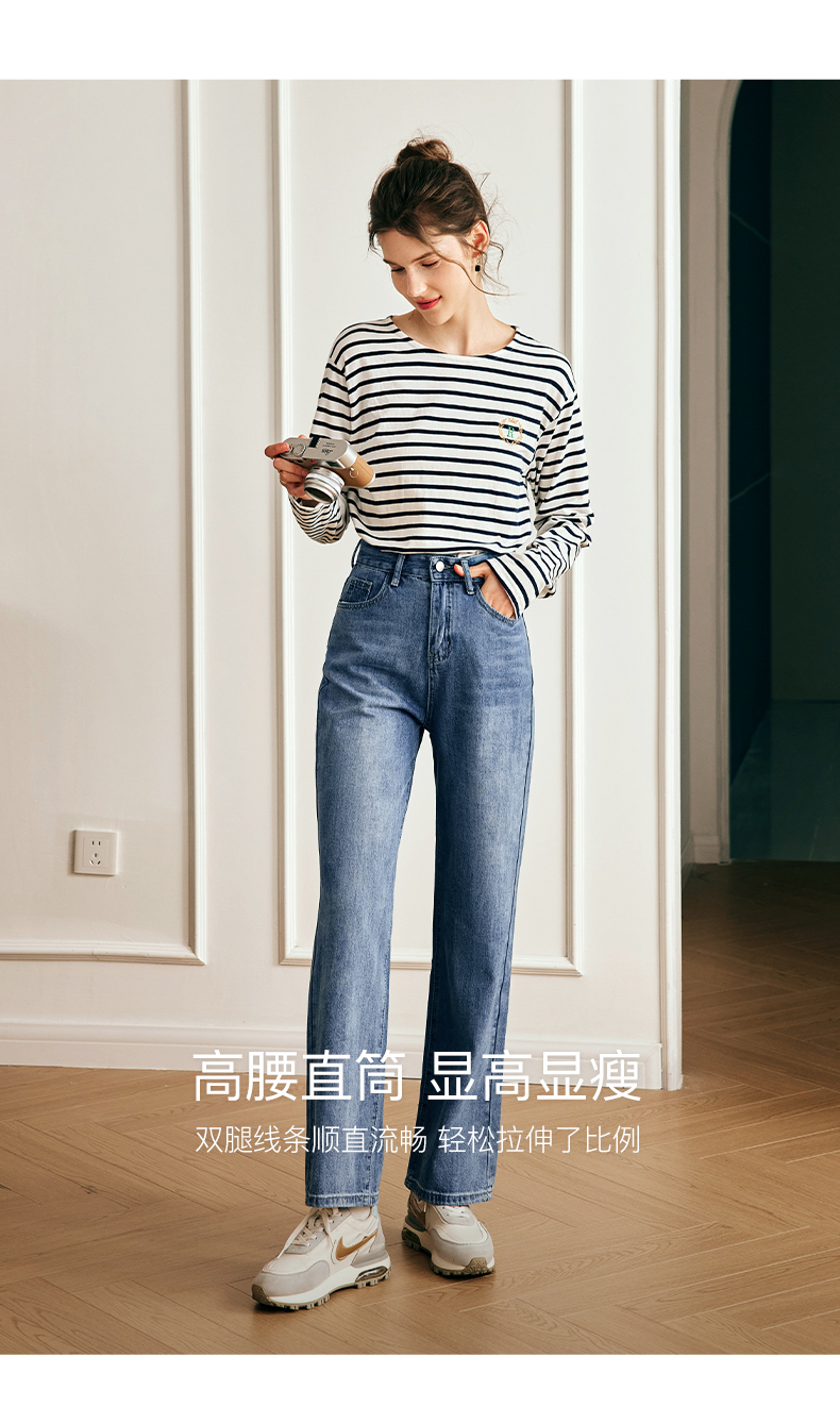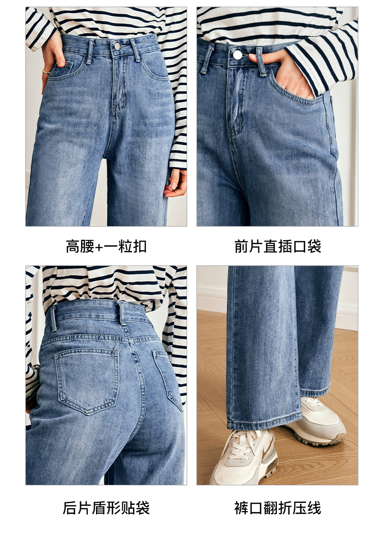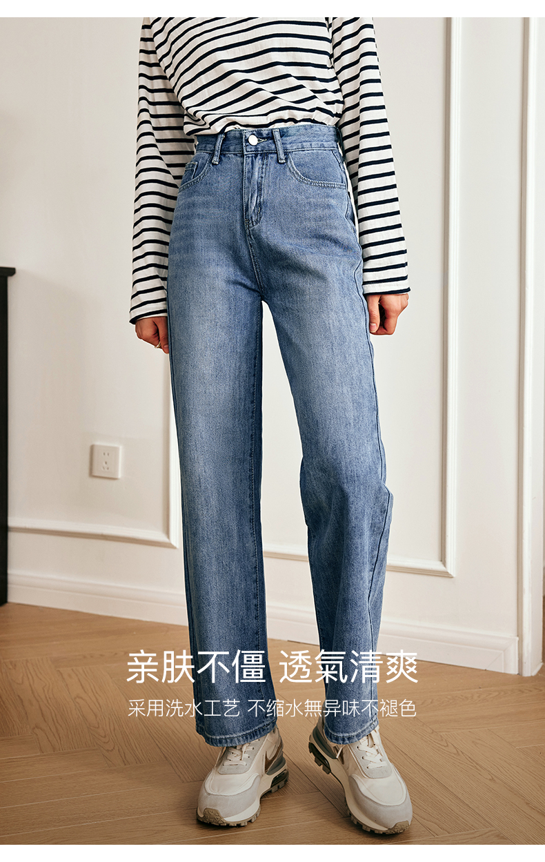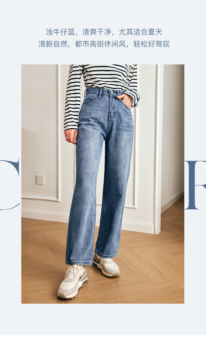 OLrain欧芮儿法式浅色牛仔裤女夏季2023新款高腰简约直筒阔腿长裤