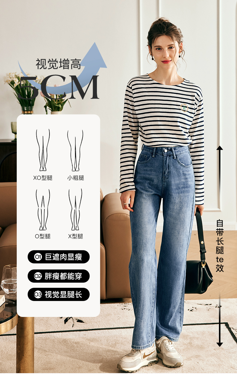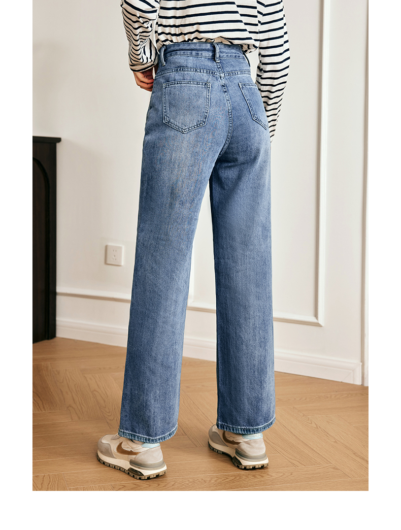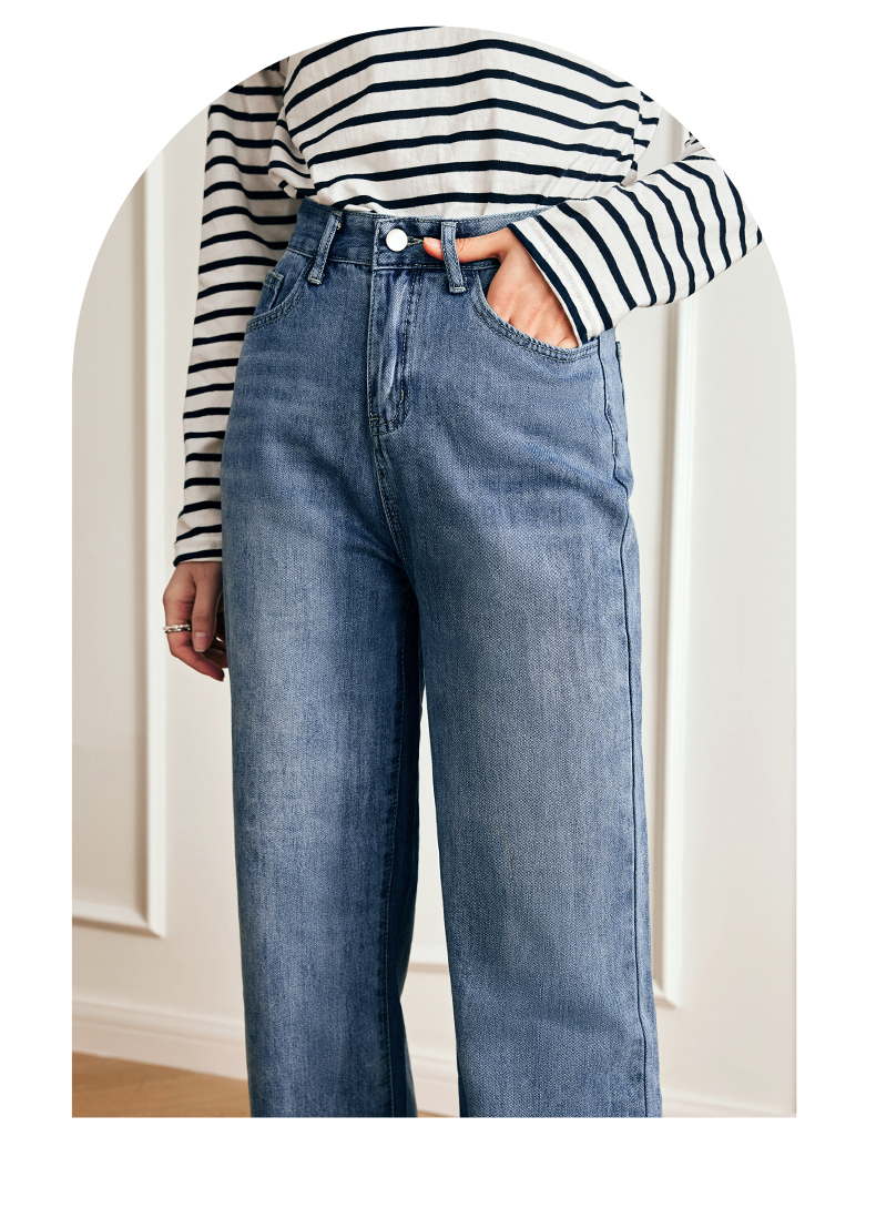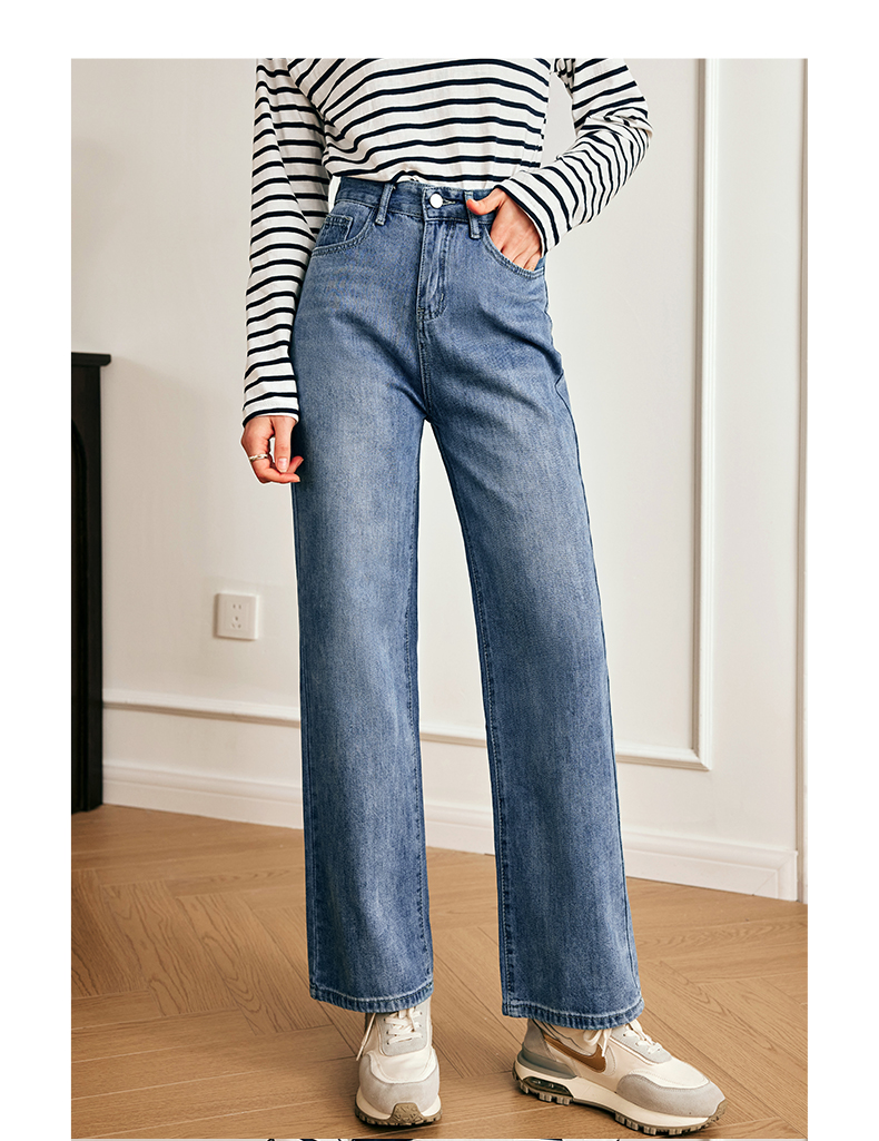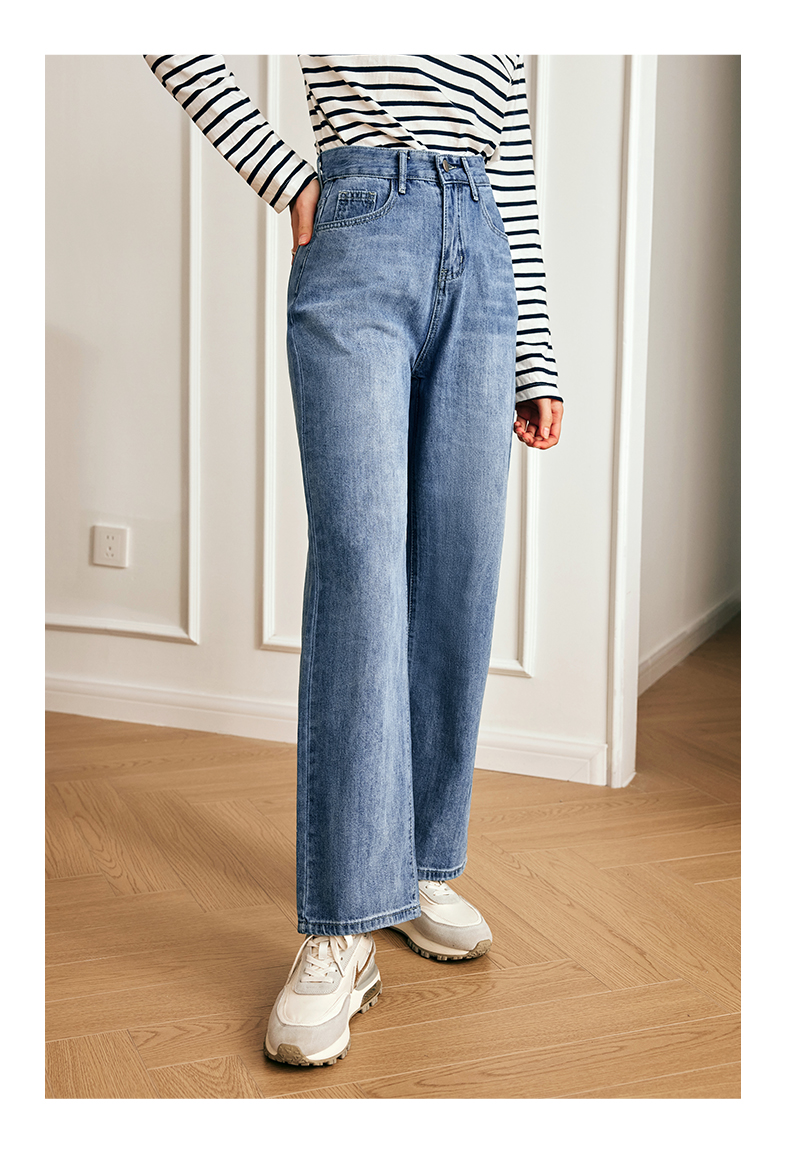 OLrain欧芮儿法式浅色牛仔裤女夏季2023新款高腰简约直筒阔腿长裤