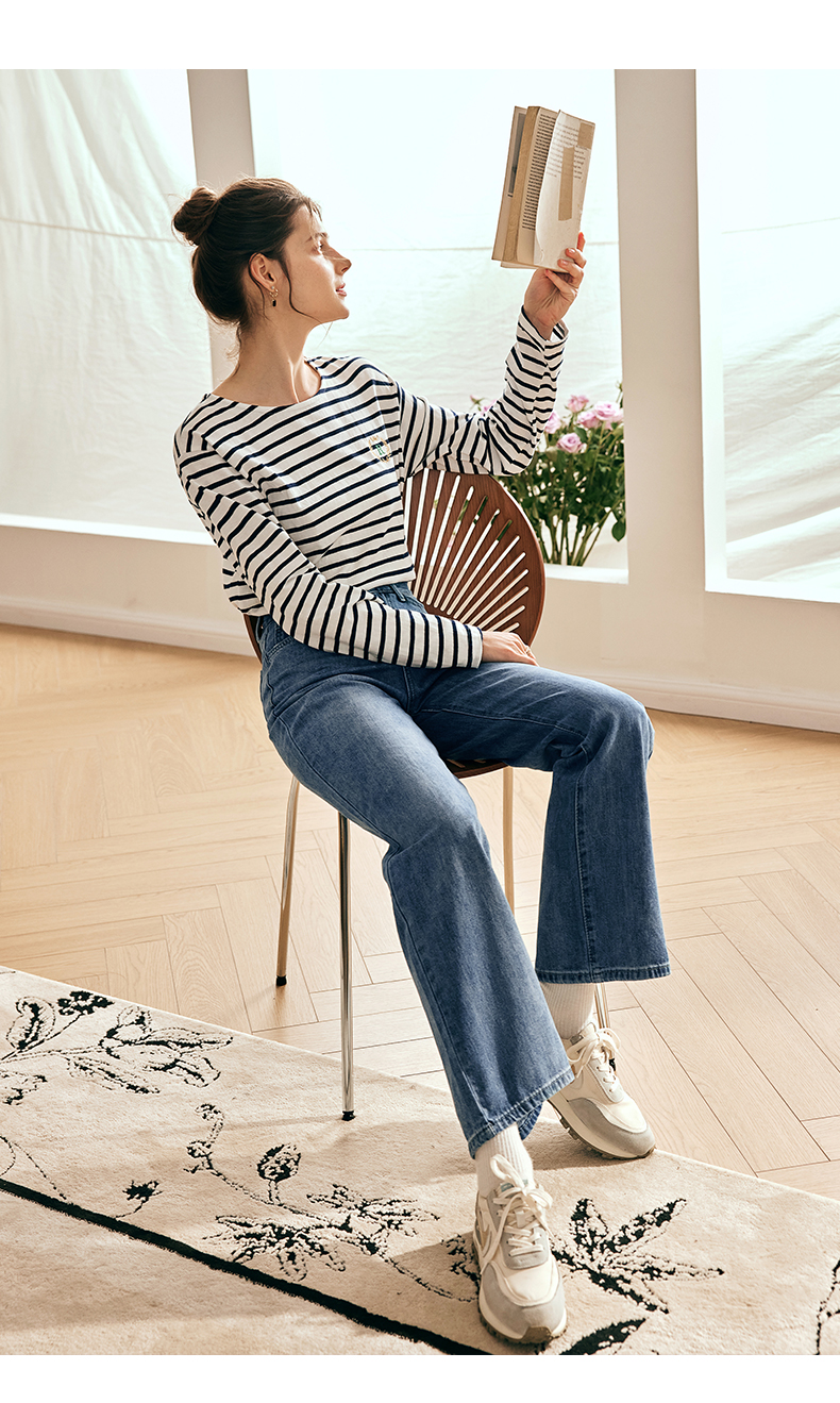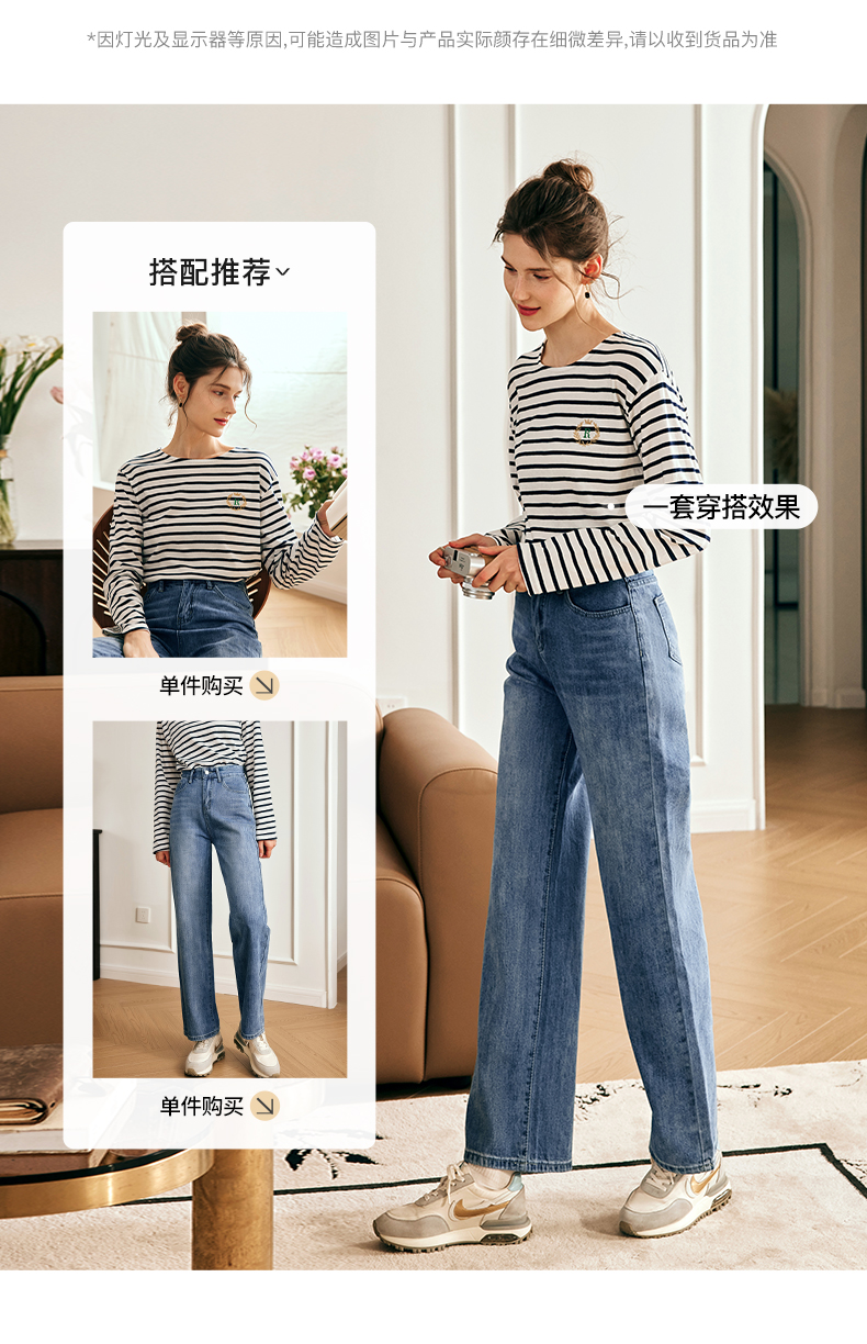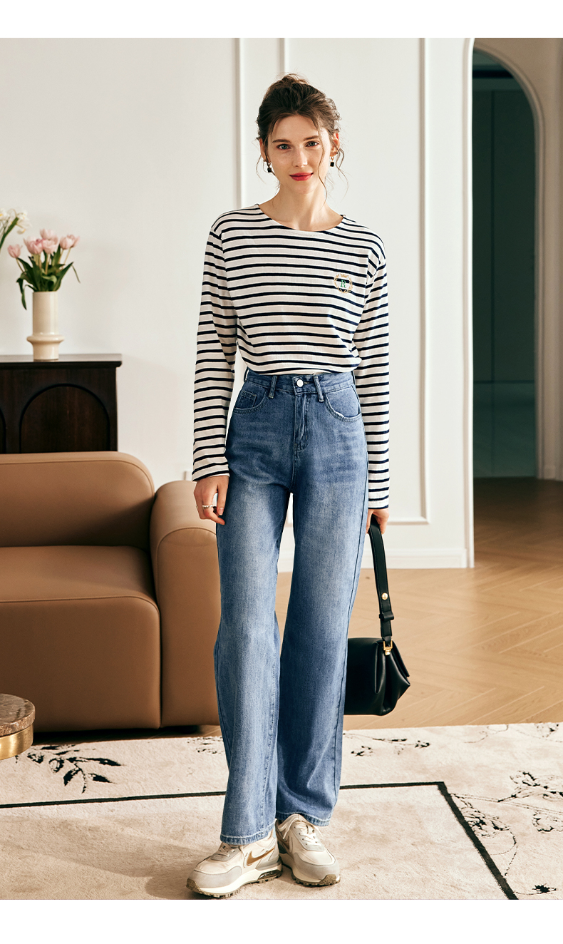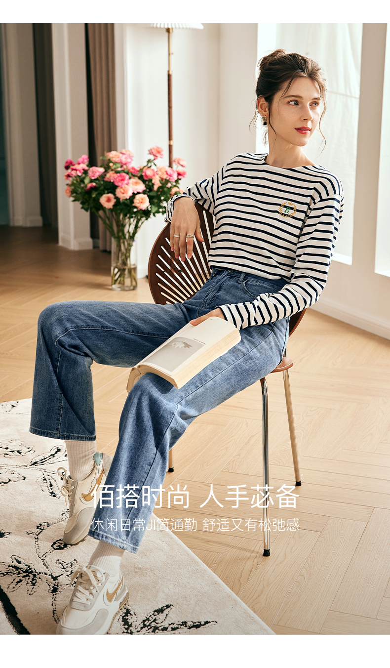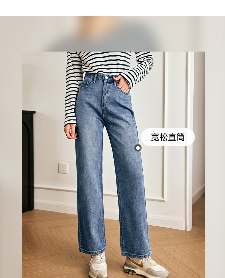 OLrain欧芮儿法式浅色牛仔裤女夏季2023新款高腰简约直筒阔腿长裤