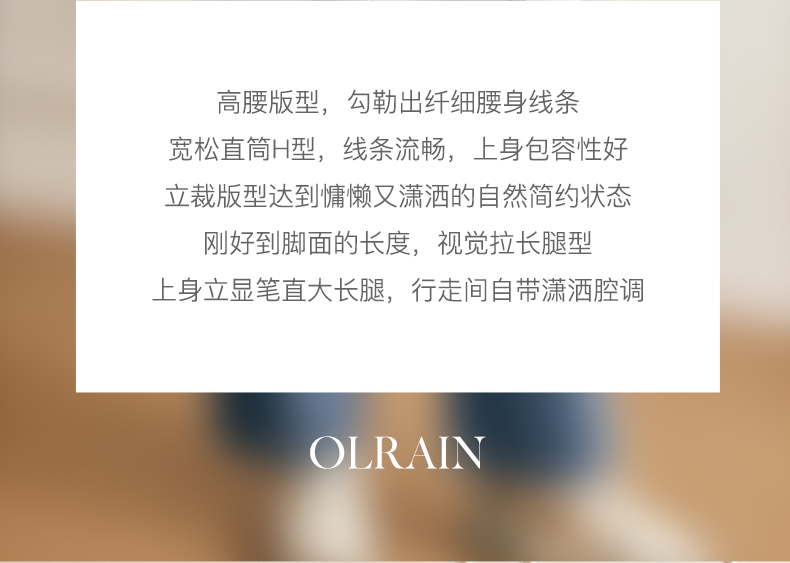- “精致”是欧芮儿olrain品牌文化的核心,欧芮儿认为,精致的女人,不但要外在动人,更要内在迷人,内外兼修,有魅力、有气质、有内涵,自信而不自傲,优雅而不矫揉,自有万种风情而不轻浮,更不故作矜持。
