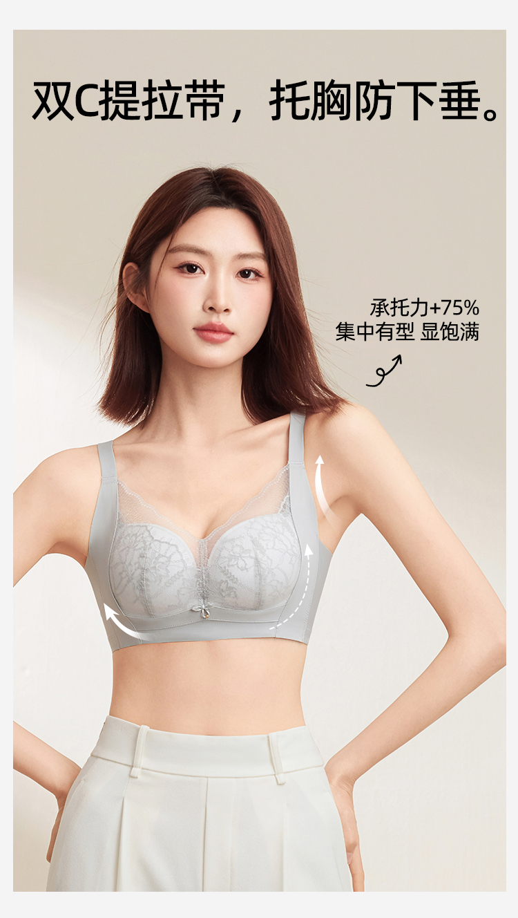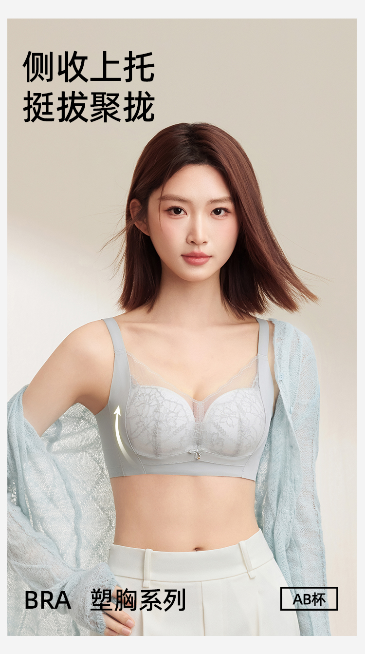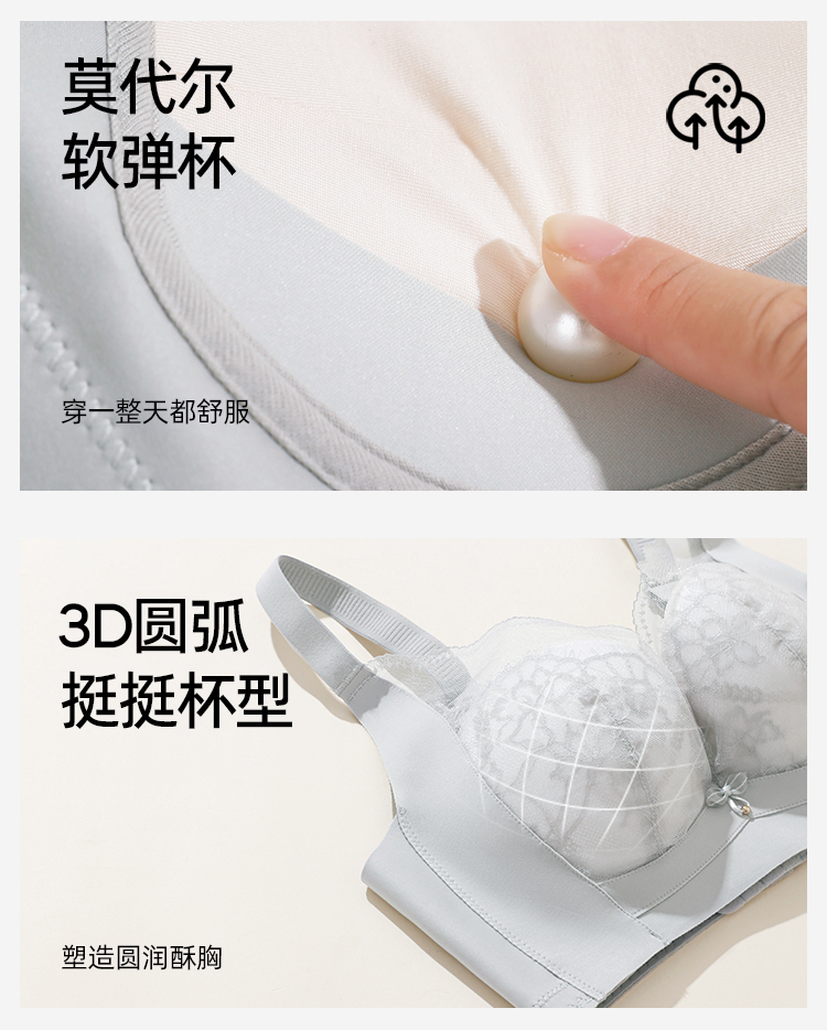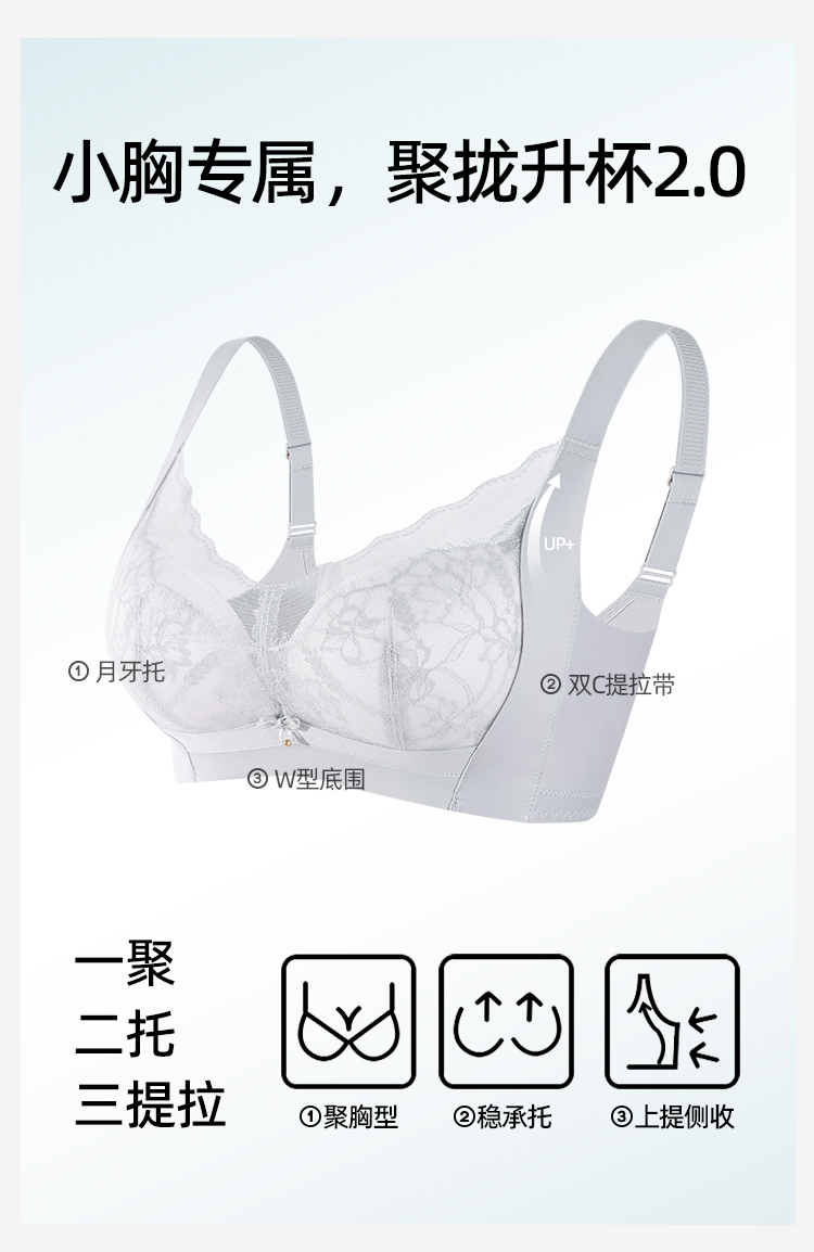 熳洁儿 小胸聚拢文胸蕾丝提拉无胶骨侧收收副乳莫代尔软弹杯25261507