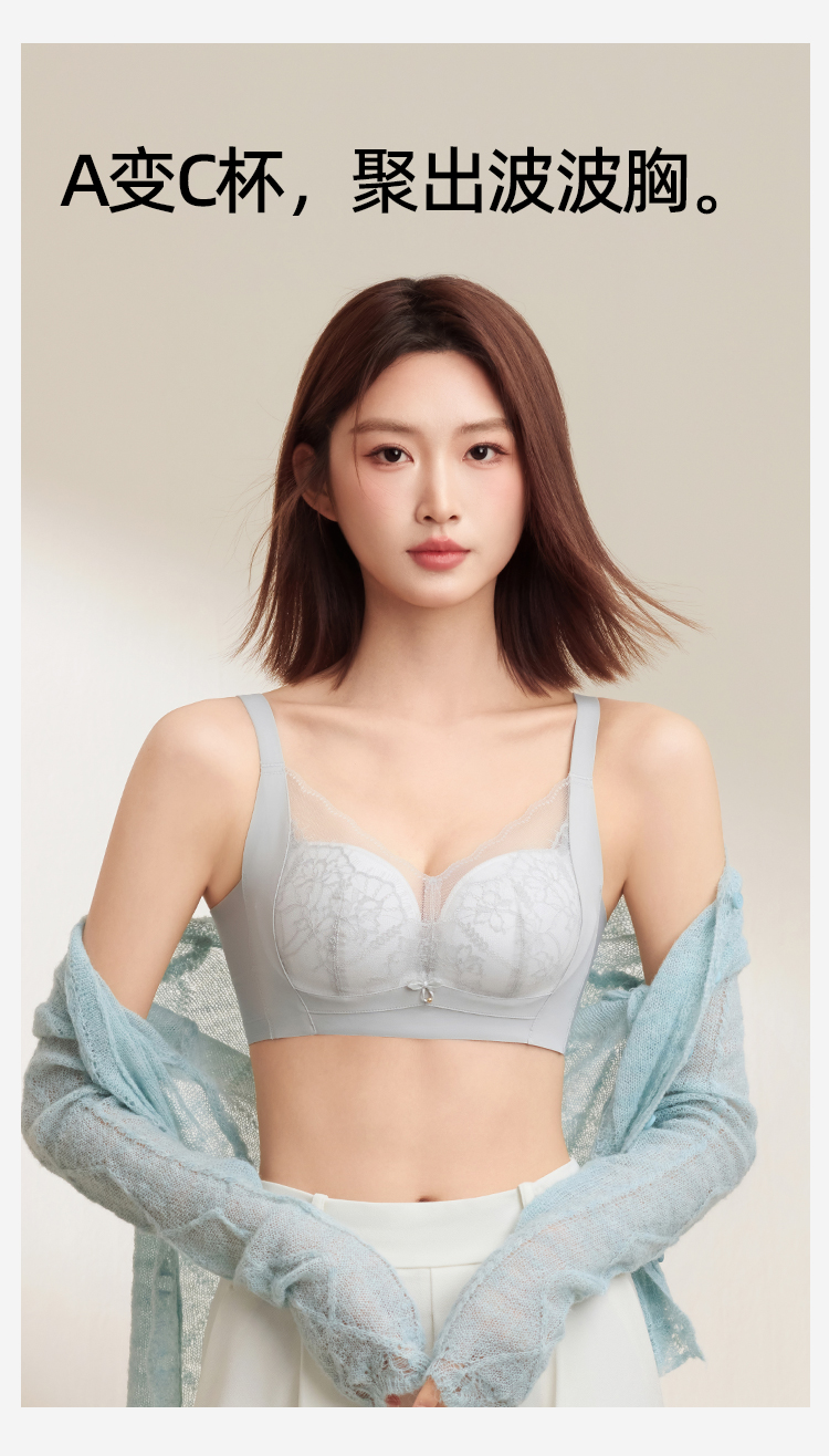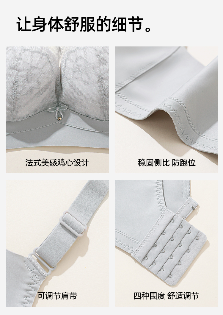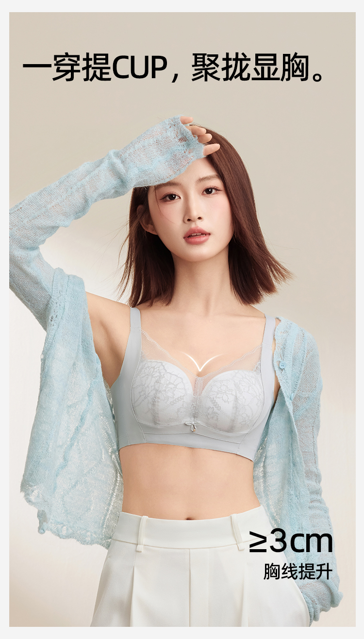 熳洁儿 小胸聚拢文胸蕾丝提拉无胶骨侧收收副乳莫代尔软弹杯25261507