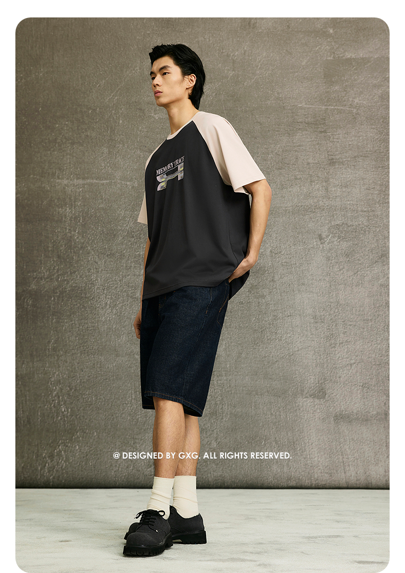 GXG男装 T恤撞色拼接圆领短袖针织时尚休闲短袖T恤 夏季热卖G25X441007