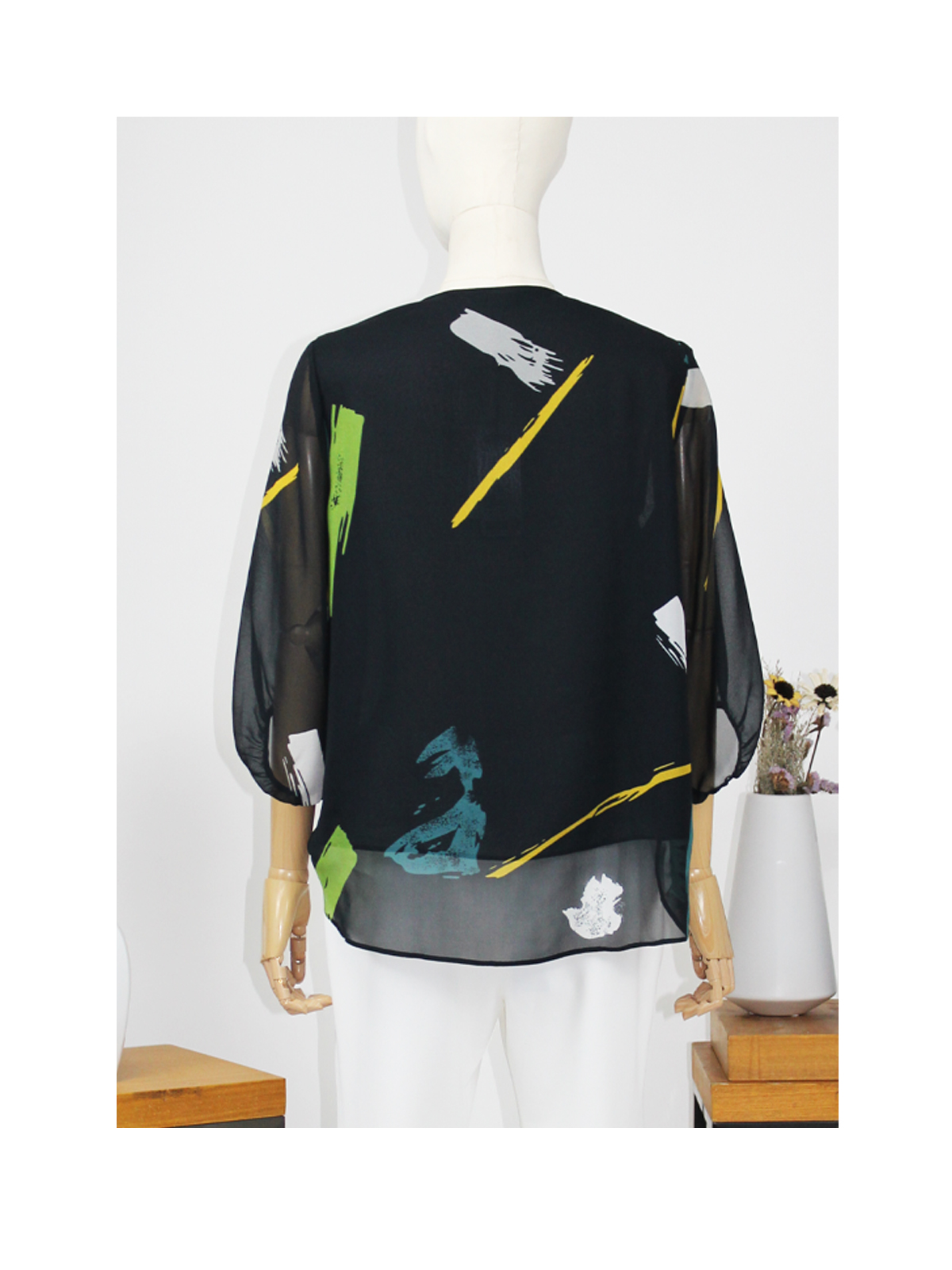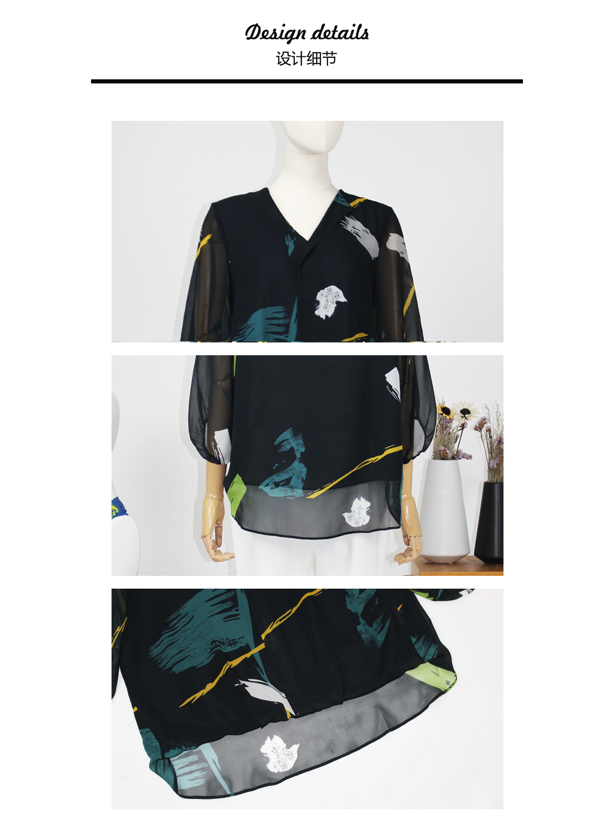 FOCALS福柯斯夏季新款宽松休闲V领七分袖印花套头衬衫F2Y2N216GV