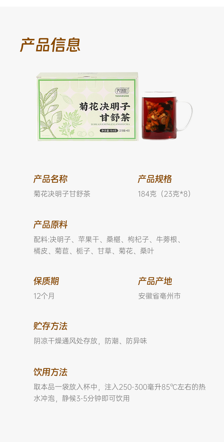 【甄选】菊花决明子甘舒茶原料干净茶香四溢久泡不淡184g(23g*8袋)/盒