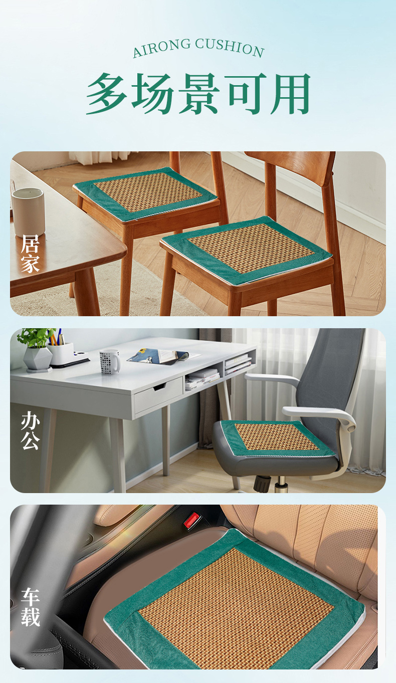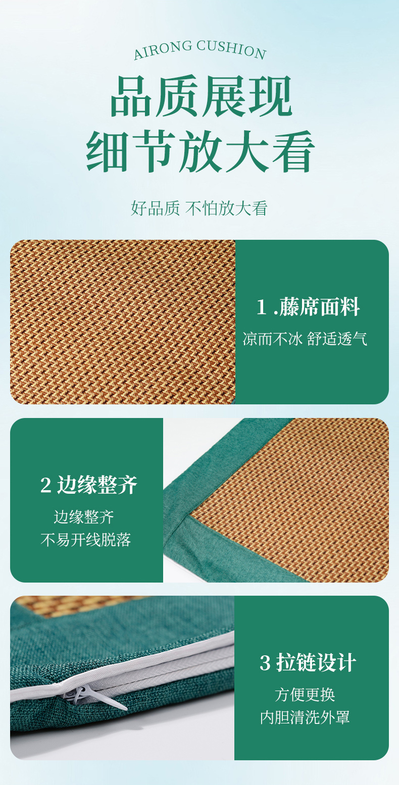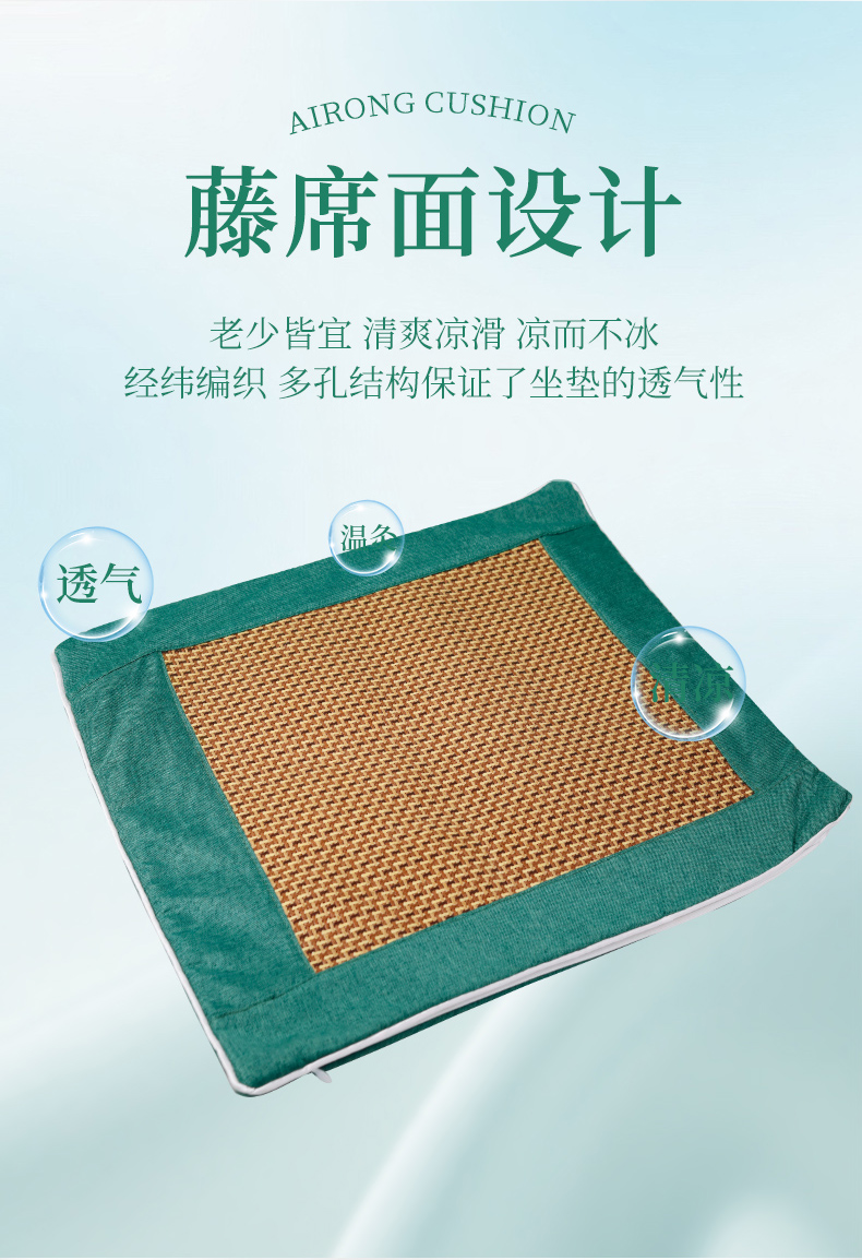 【买1送1,4色可选】夏季凉席艾绒坐垫 艾灸凉席两用款 深层渗透 自然凉感 足量艾绒填充 边坐边养护 藤席和艾绒可拆卸 拉链设计 40*40cm适合多数座椅