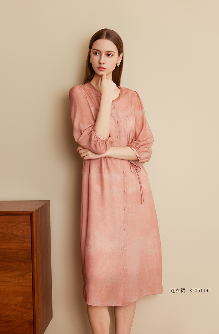 【圆领系带真丝裙】25年夏季新品女士100%桑蚕丝时尚七分袖真丝裙子