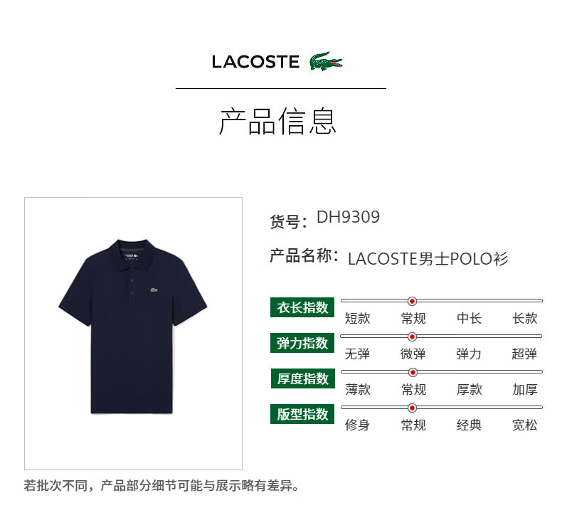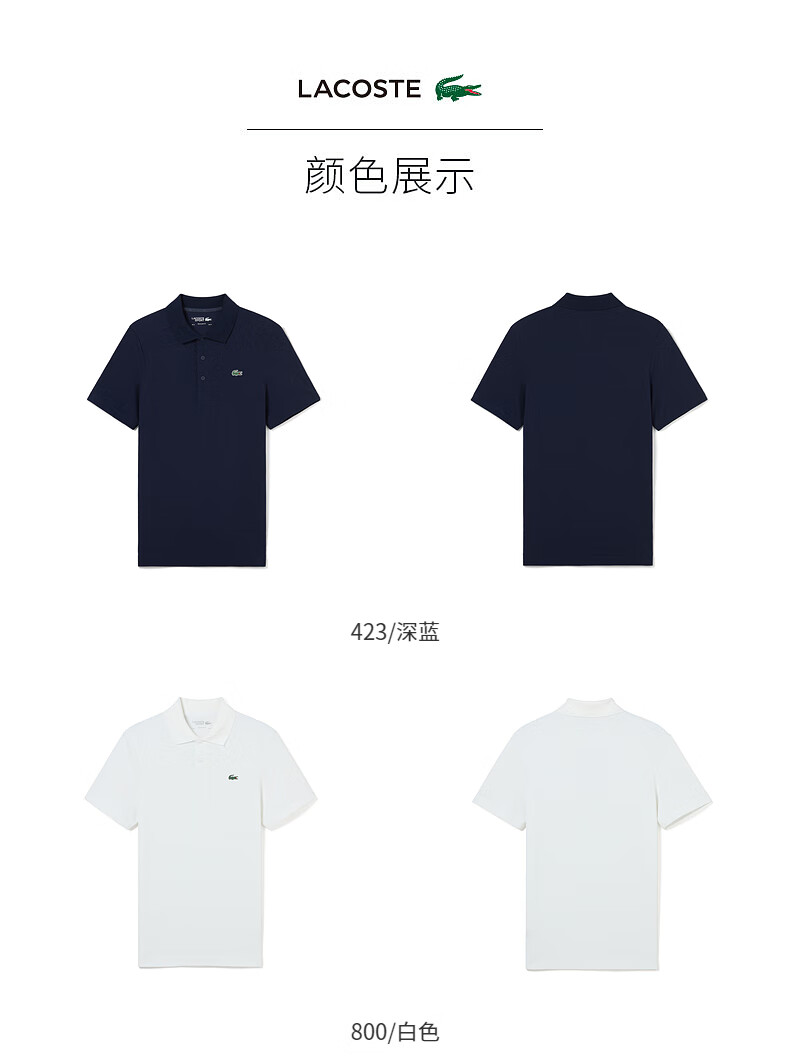 Lacoste法国鳄鱼男装新款纯色简约修身商务休闲短袖翻领Polo衫DH9309-10