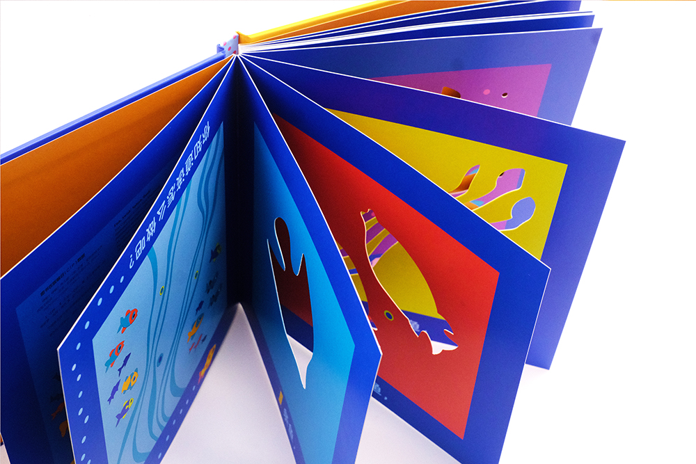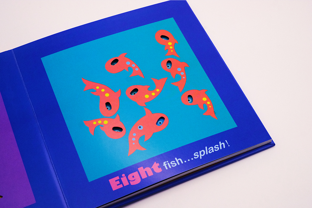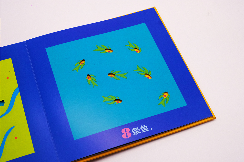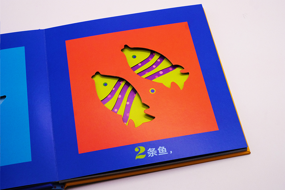 这本书的图能够真正吸引住孩子。每一页上精心设计的鱼形模切能够在翻页的时候彼此重叠,创造出颜色和纹路各式各样的鱼。特别的是,当你把书上下颠倒,就会出现完全不同的鱼。书上鲜艳的色彩能够吸引甚至还不会数数的小读者,而硬质纸板页面确保它可以经得住大量的翻阅。