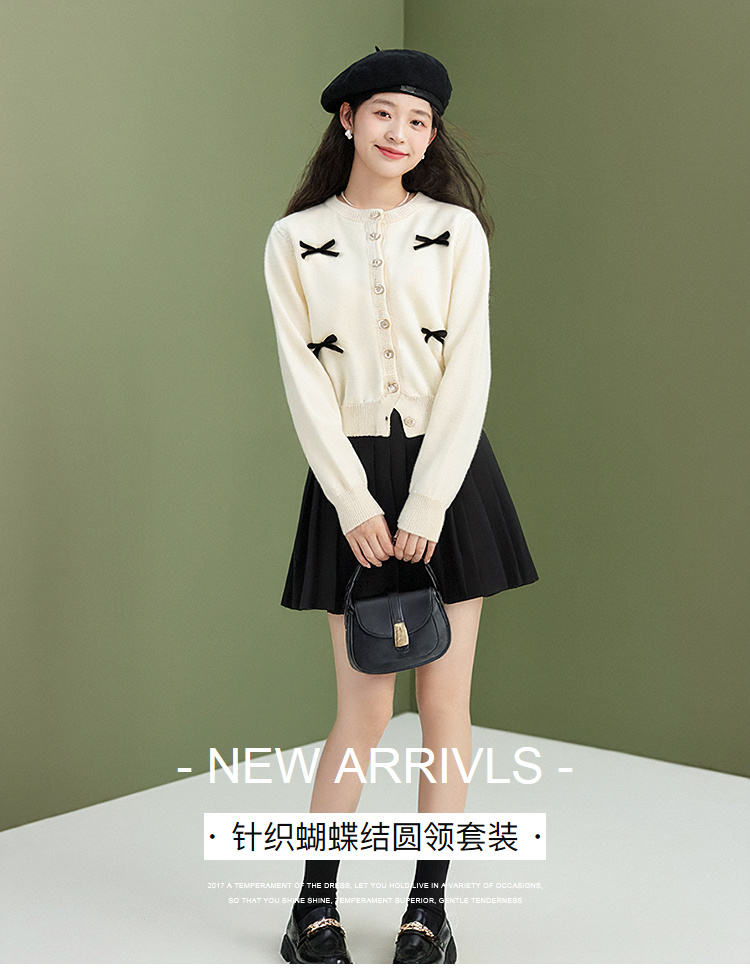 奢姿大码女装2025冬季针织减龄蝴蝶结圆领两件套胖妹妹时尚套装9954954031AB
