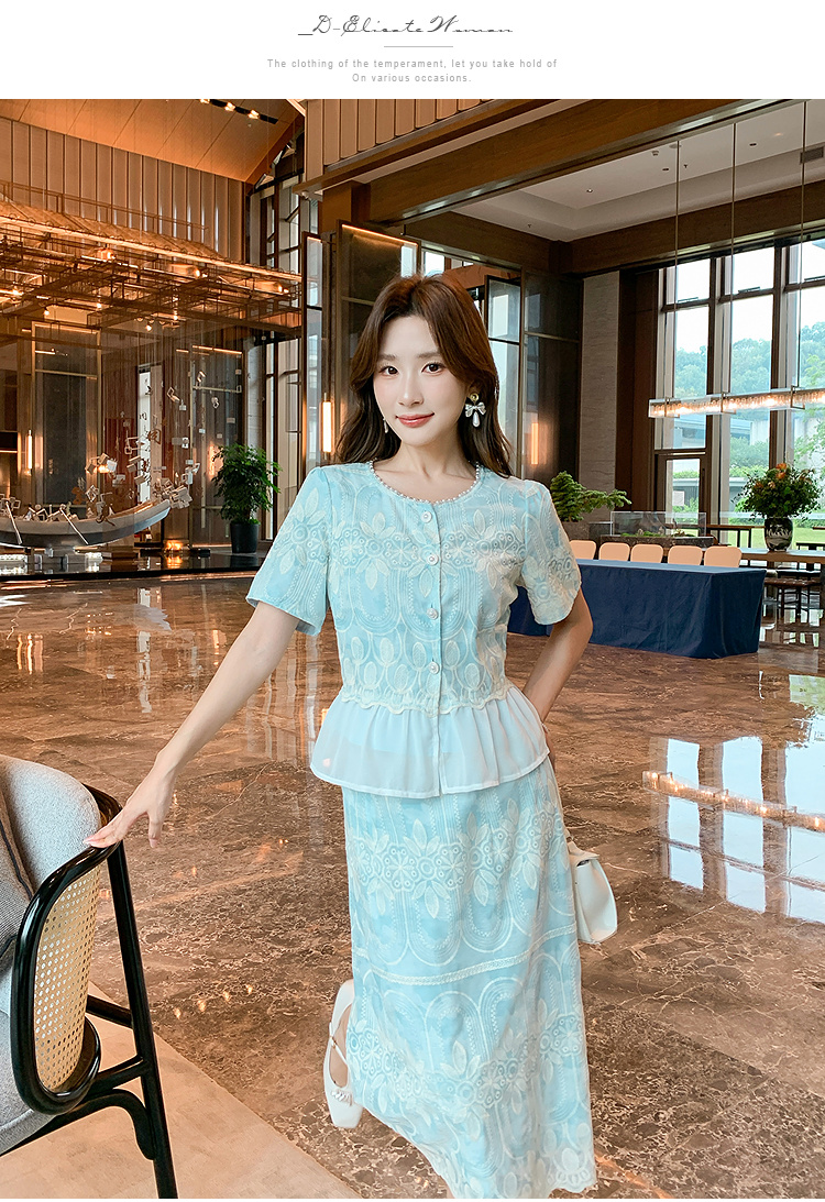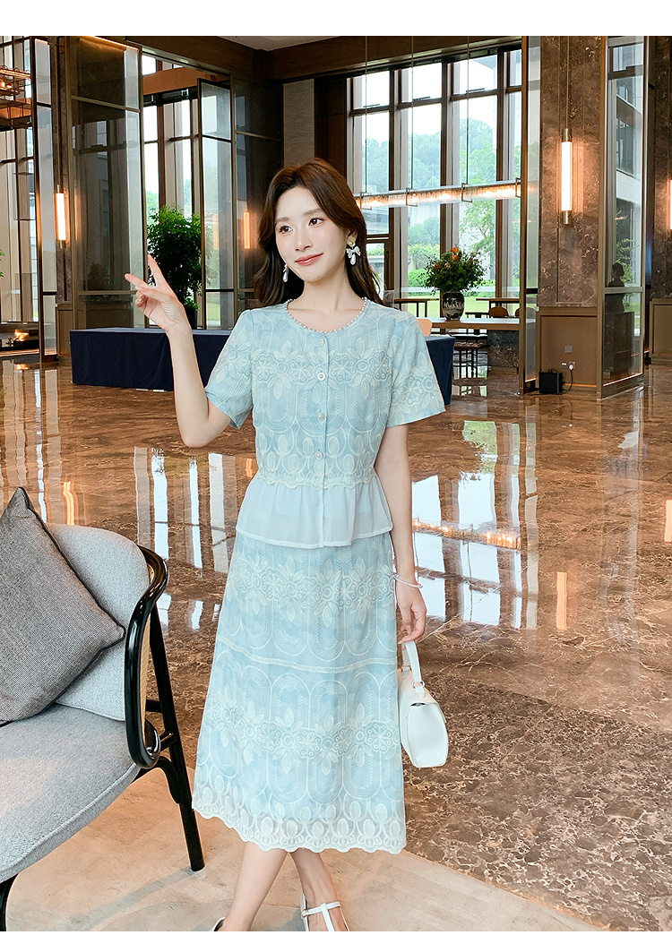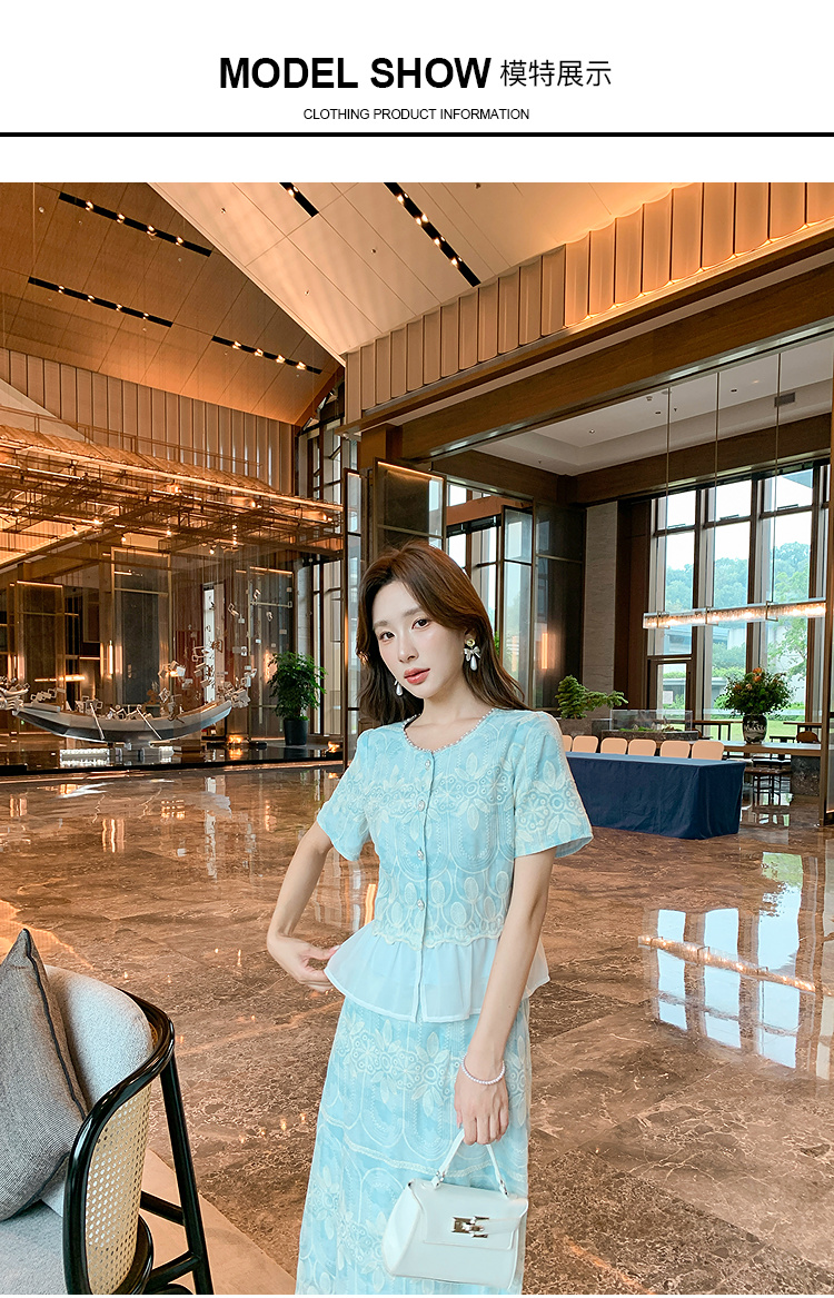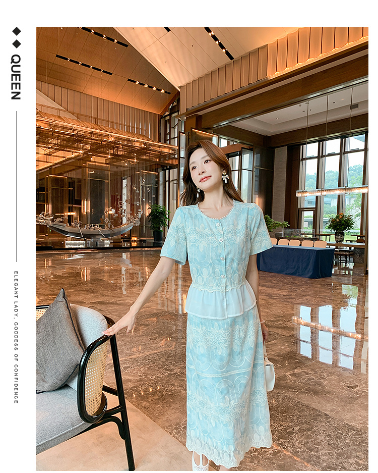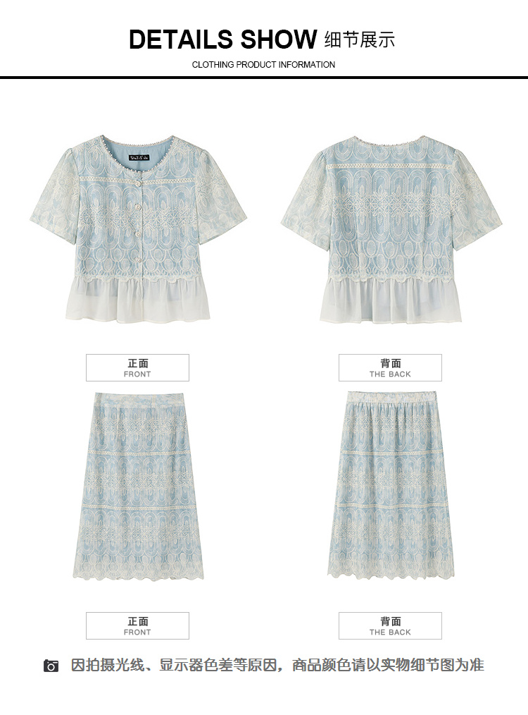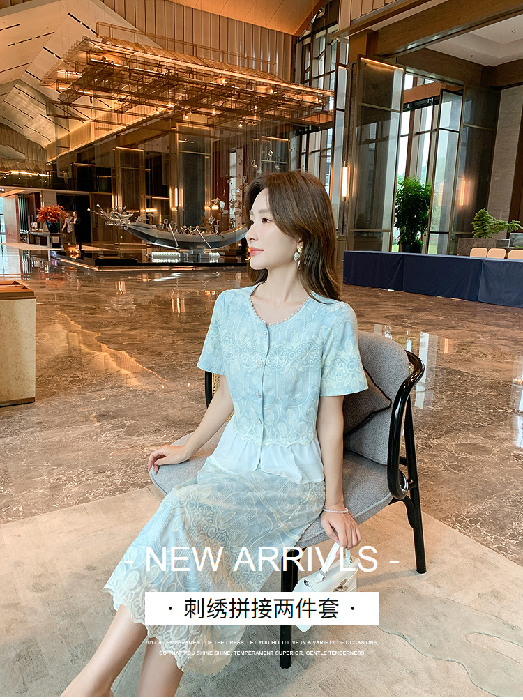 【清仓超15天不保价】奢姿大码女装2025夏季气质拼接两件套装胖妹妹时尚减龄刺绣套装9952953388【1】